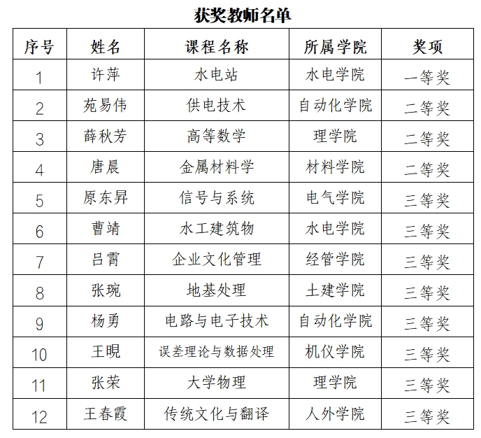 本次比赛经教师个人申报、各教学单位初选和推荐,共有44名教师进入校级初赛。经过网络评审和校级决赛,共评出一等奖1名、二等奖3名、三等奖8名。