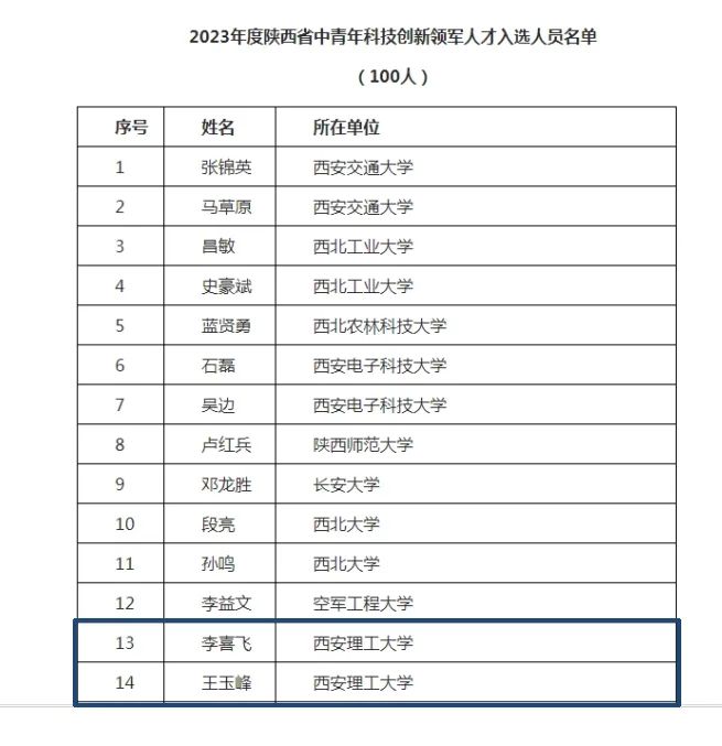 近日,陕西省科学技术厅发布了《陕西省科学技术厅关于组织推选2023年中青年科技创新领军人才、科技创新创业人才、青年科技新星的通知》(陕科政函〔2023〕450号),KY开元集团官网5位教师入选。材料科学与工程学院教授李喜飞,机械与精密仪器工程学院教授王玉峰入选2023年度中青年科技创新领军人才;机械与精密仪器工程学院副教授高志强,水利水电学院副教授明波、副教授于坤霞入选2024年度青年科技新星。