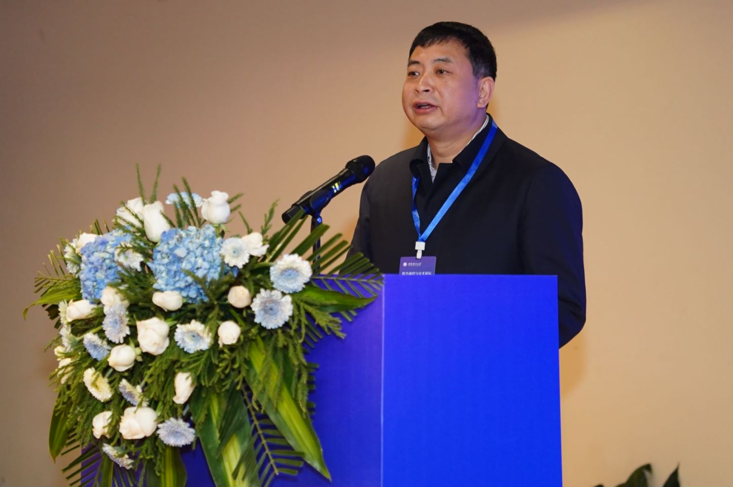刘云贺在应用数学中心成立揭牌仪式上致辞,他代表学校向参加大会的专家学者表示欢迎和感谢。刘云贺介绍了学校和理学院的基本情况,肯定了理学院近年来在理学博士点建设和理学国家级人才培养上取得的成就,他对中心未来发展建设提出三点意见:一要高度重视,强化建设;二要面向全国,加强交流;三是要开放共享,促进发展。他希望应用数学中心全力服务社会经济高质量发展,展现数学学科的新作为。