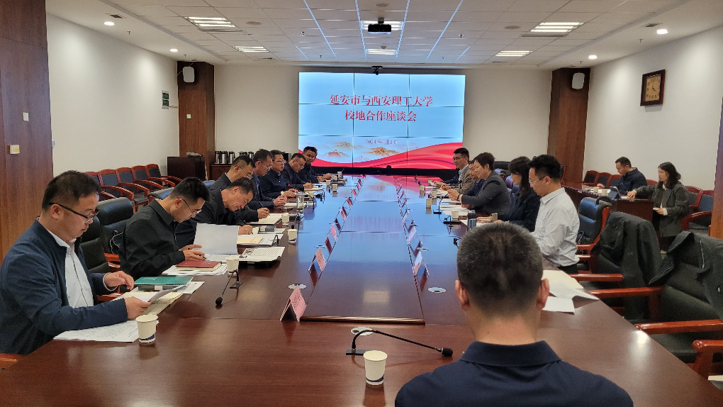 学校科技处、艺术与设计学院、西北旱区生态水利国家重点实验室及水利水电学院等单位负责人和教授代表参加了座谈会。延安市委组织部、市文旅局、发改委、科技局、工信局、农业农村局、国资委和高新区等部门负责人参加了座谈会,并陪同调研。