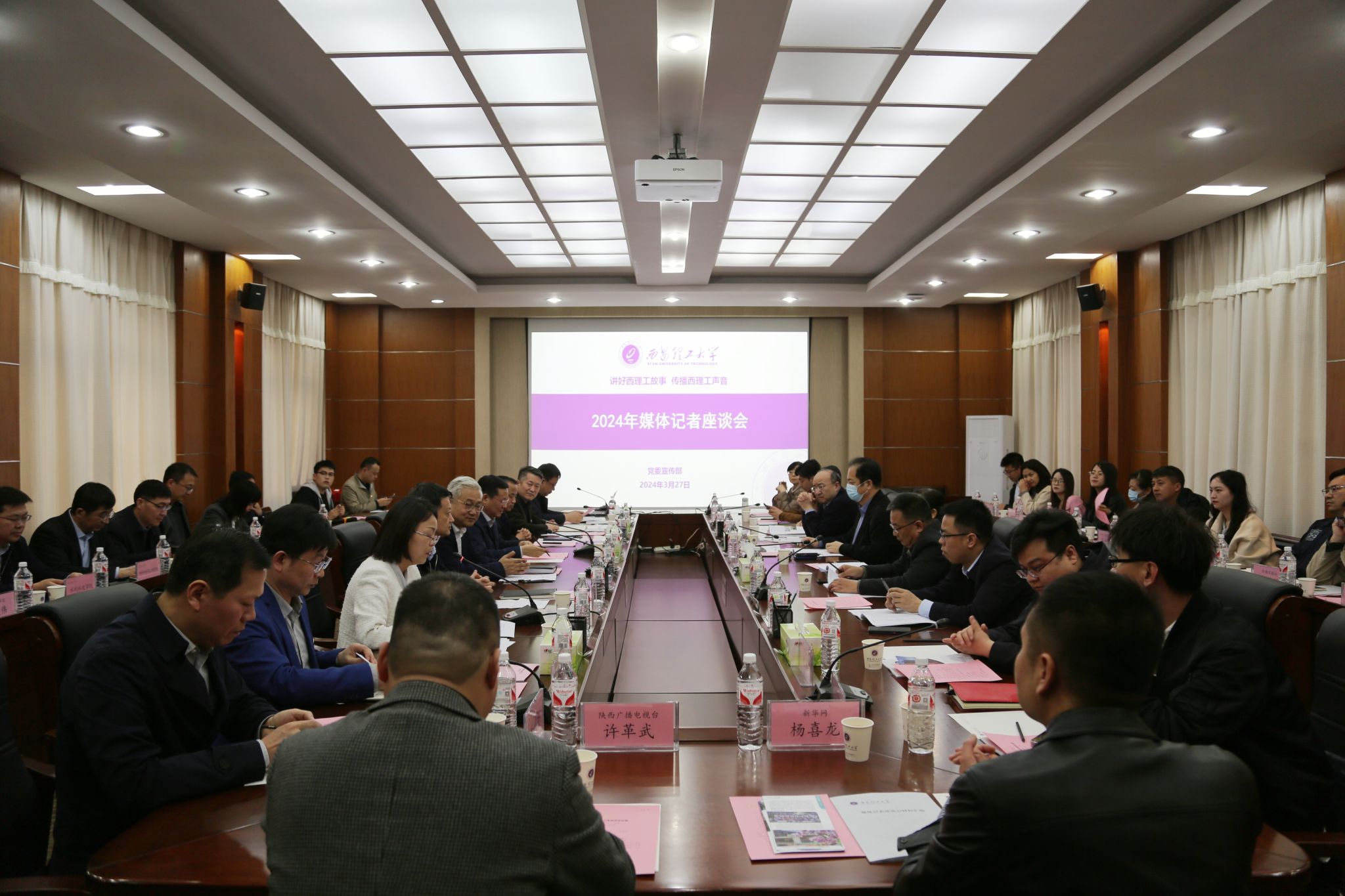 为切实加大对学校教育改革发展的宣传力度,营造出推动学校高质量发展的舆论环境,凝聚起加快“双一流”建设的磅礴力量,3月27日下午,学校在金花校区101会议室召开2024年媒体记者座谈会,邀请省教育厅融媒体中心主任徐进军,中央驻陕和省内主流媒体参会,共商学校新闻宣传大计。校党委书记李智军、校党委副书记马亮出席会议并讲话。校党委宣传部常务副部长陈梅主持会议。