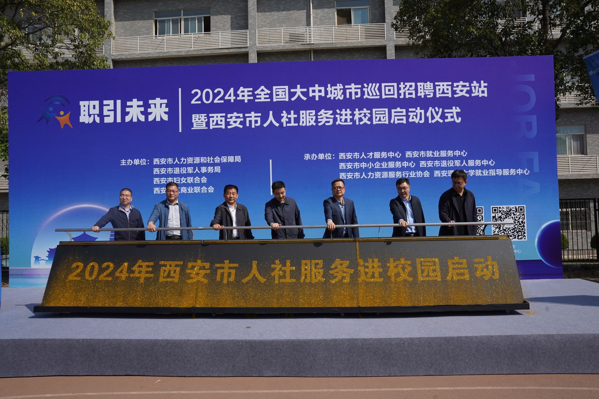 4月12日,“职”引未来—2024年全国大中城市巡回招聘西安站暨西安市人社服务进校园启动仪式在KY开元金花校区举行。副校长张存库,西安市人社局党组书记、局长廉宏伟,西安各区县、西咸新区、各开发区人社部门等相关负责人出席启动仪式。