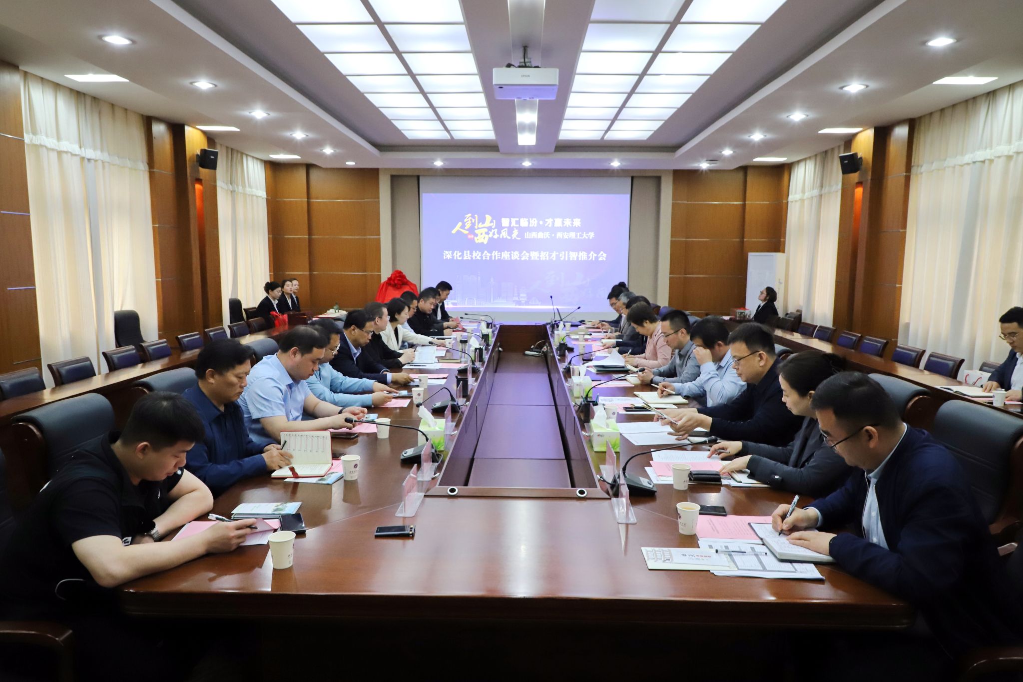 4月16日,山西曲沃县委书记吴滨一行来校对接县校合作,召开招才引智推介会。KY开元副校长申烨华、张存库出席相关活动。