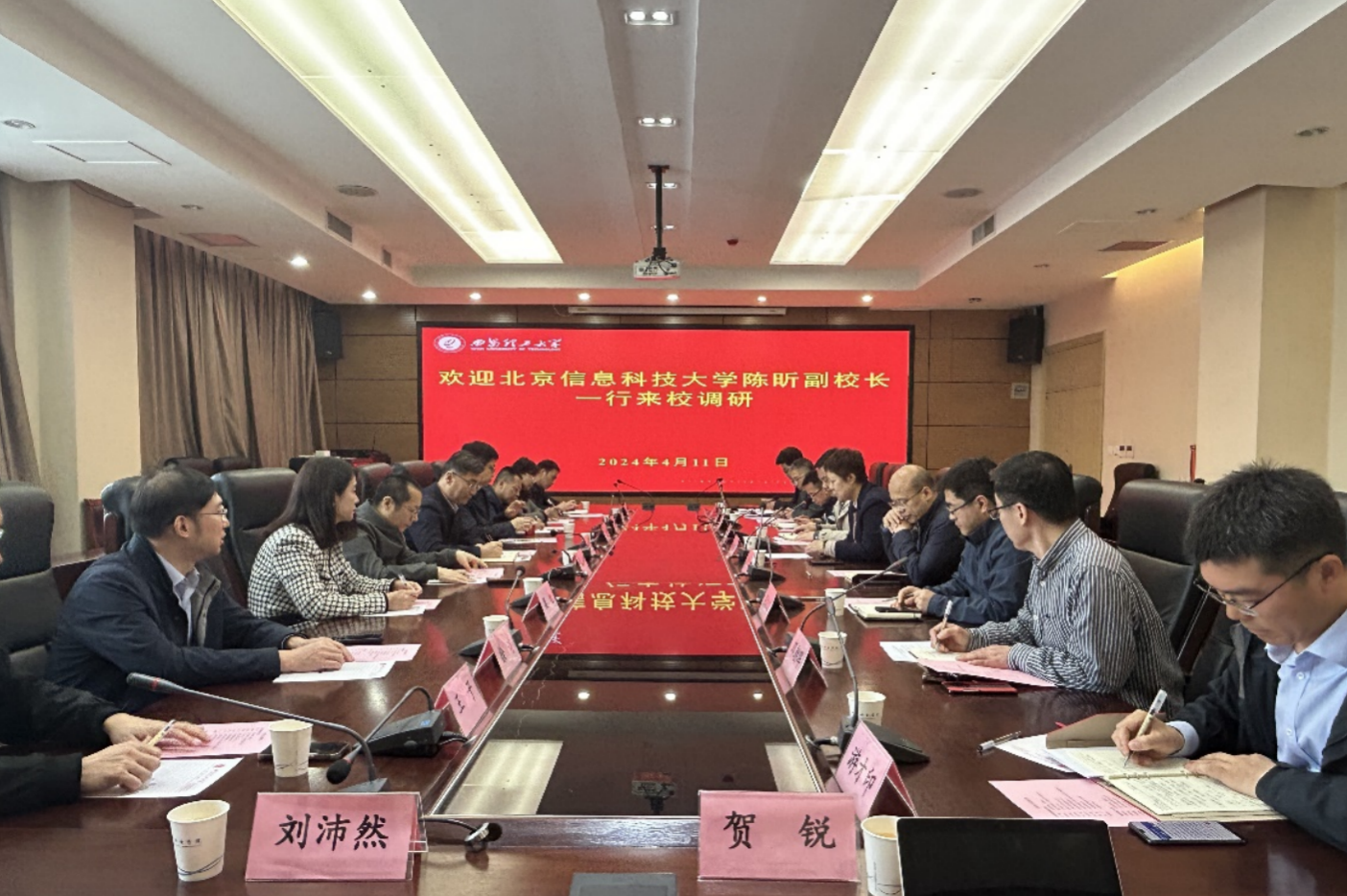 4月11日,北京信息科技大学副校长陈昕一行到KY开元调研交流。副校长申烨华出席调研座谈会,会议由科技处副处长郭梁主持。
