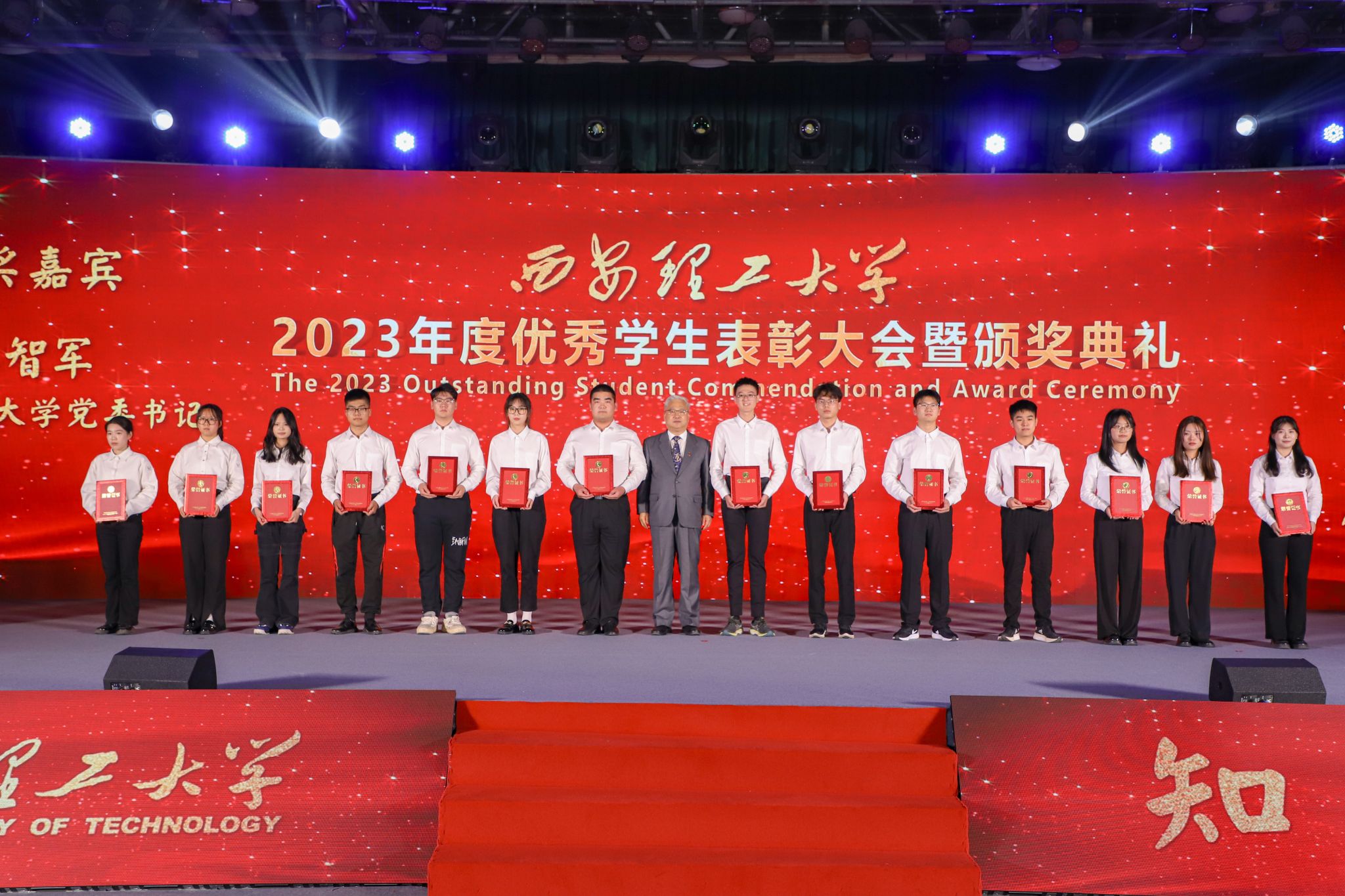 颁奖典礼在全体师生同唱校歌中落下帷幕。学生工作领导小组成员单位负责人,各学院党委书记、院长、主管学生工作副书记兼副院长,全体学工干部,1000余名学生代表在现场观看颁奖典礼。颁奖典礼在学校官方视频号同步网络直播,2万余人在线观看。