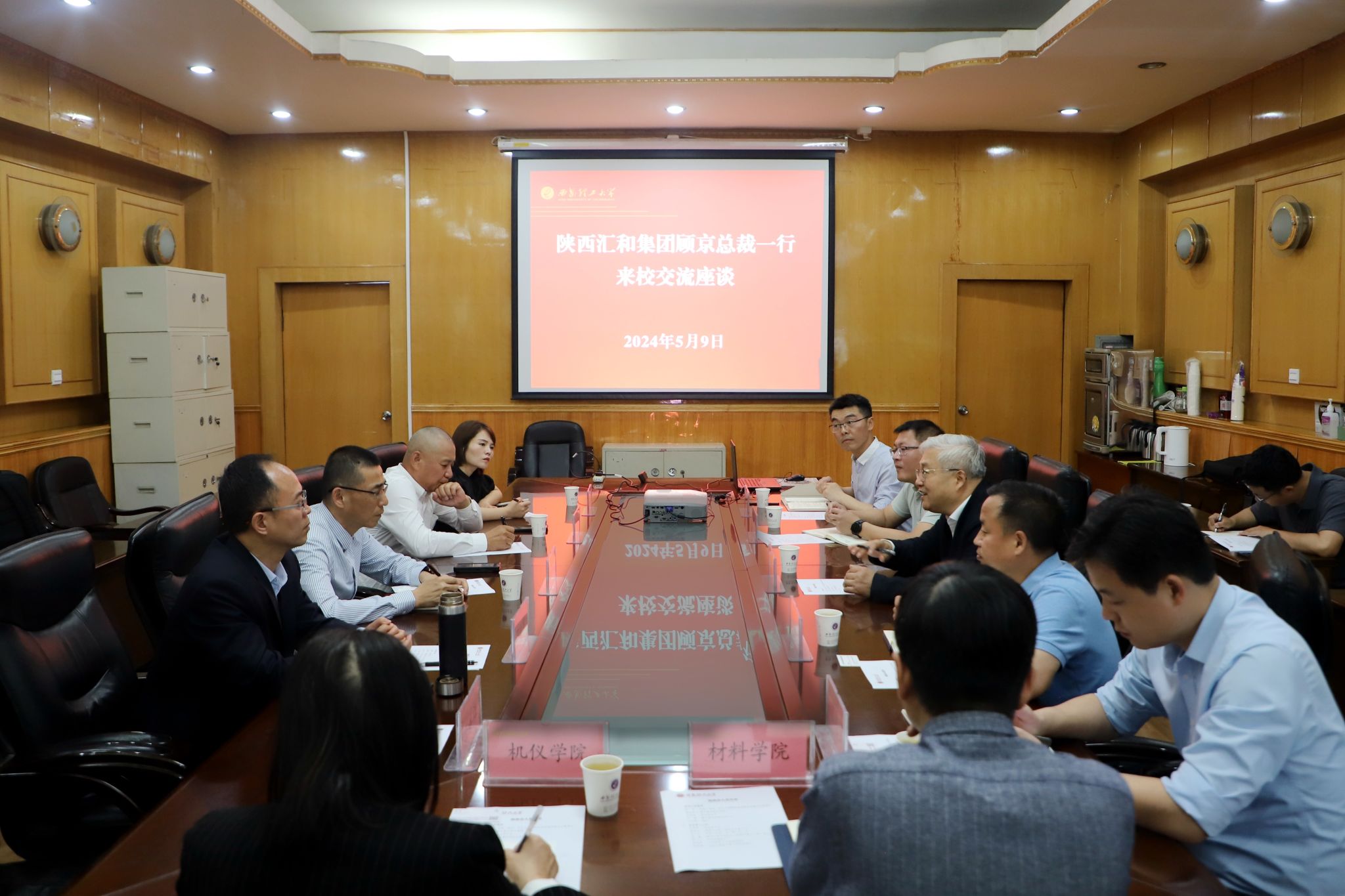 学校党办校办、科技处、学生处、国内合作与校友处、材料学院、机仪学院,陕西汇和集团综合部、整车事业部、人力资源部等相关同志参加座谈。