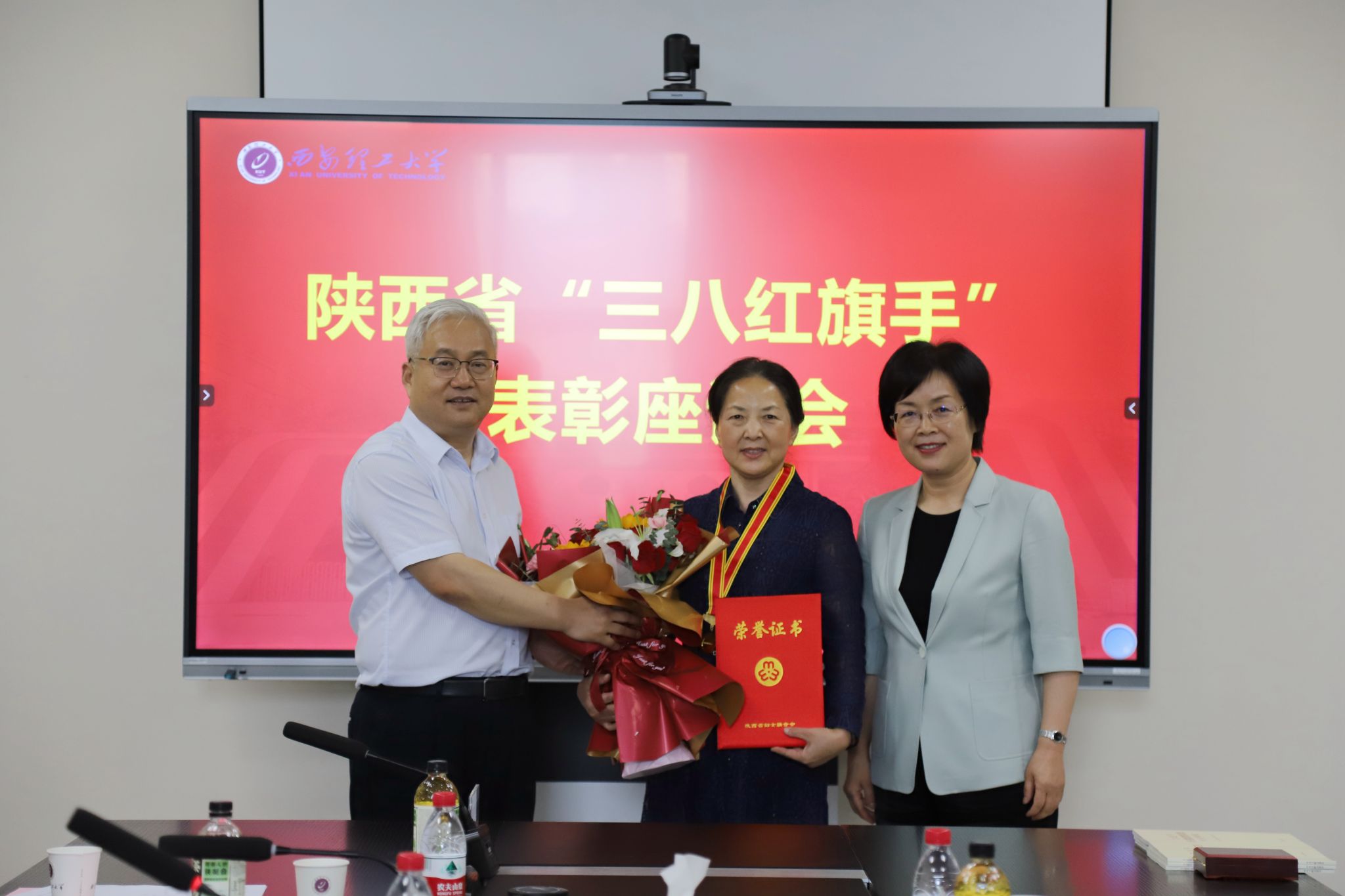 6月7日,学校举行陕西省“三八红旗手”先进表彰座谈会,陕西省妇女联合会党组书记、主席王玉娥,陕西省教育厅二级巡视员董侠,陕西省妇女联合会宣传部部长安婧、办公室副主任张奕帆一行来校,为荣获陕西省“三八红旗手”荣誉称号的黄颖为教授颁奖授牌。KY开元党委书记李智军出席座谈会,会议由校党委副书记马亮主持。