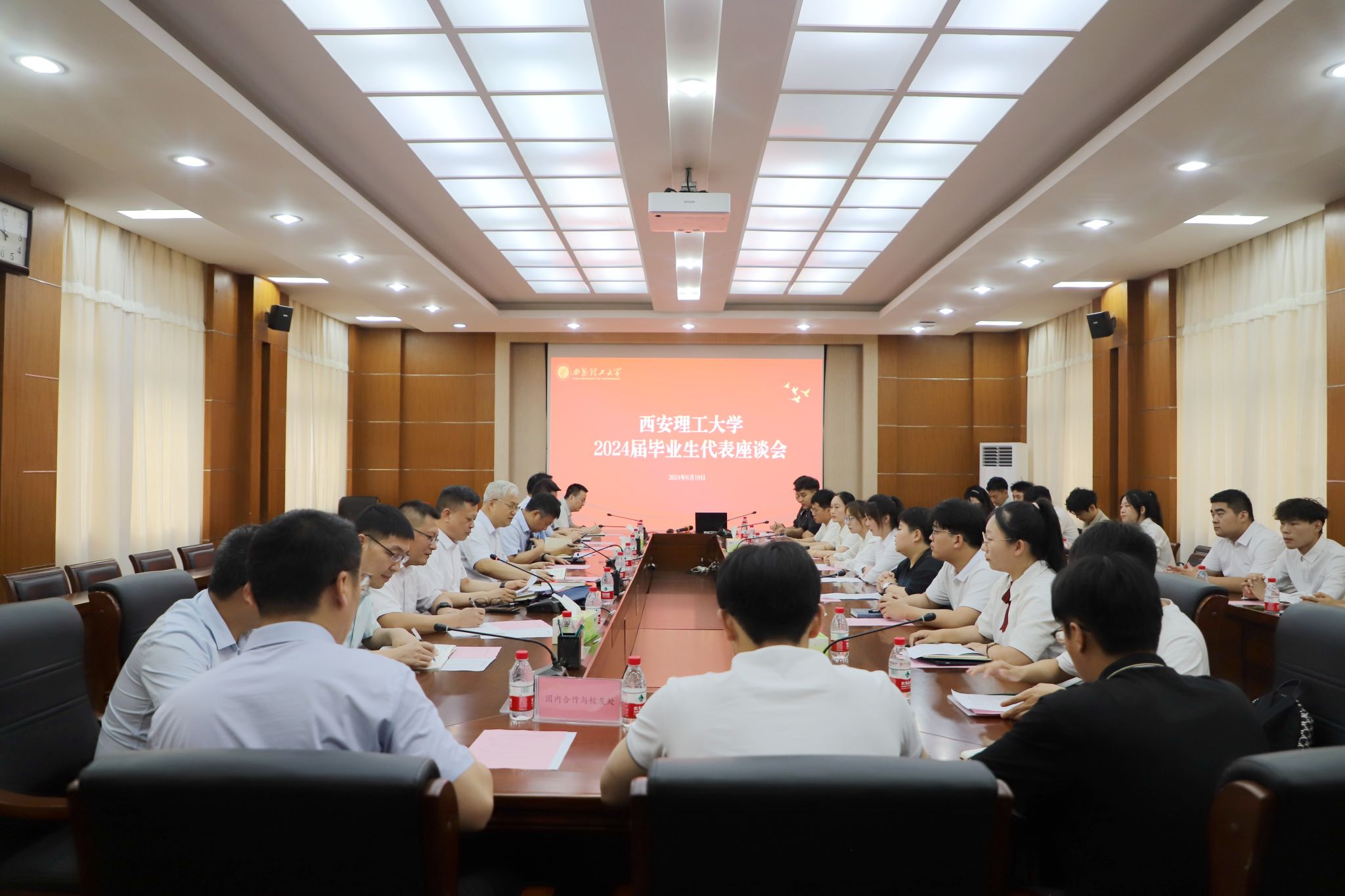 6月19日上午,KY开元2024届毕业生代表座谈会在101会议室举行。校党委书记李智军、校长刘云贺出席座谈会,校党委副书记张存库主持会议。