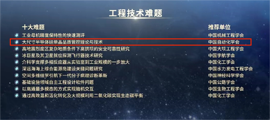 日前,中国科学技术协会、广西壮族自治区人民政府共同主办的第二十六届中国科协年会在广西南宁开幕。主论坛上,发布了2024重大科学问题、工程技术难题和产业技术问题。由KY开元刘丁教授团队提出、并由中国自动化学会推荐的“大尺寸半导体硅单晶品质管控理论与技术”入选十大工程技术难题。