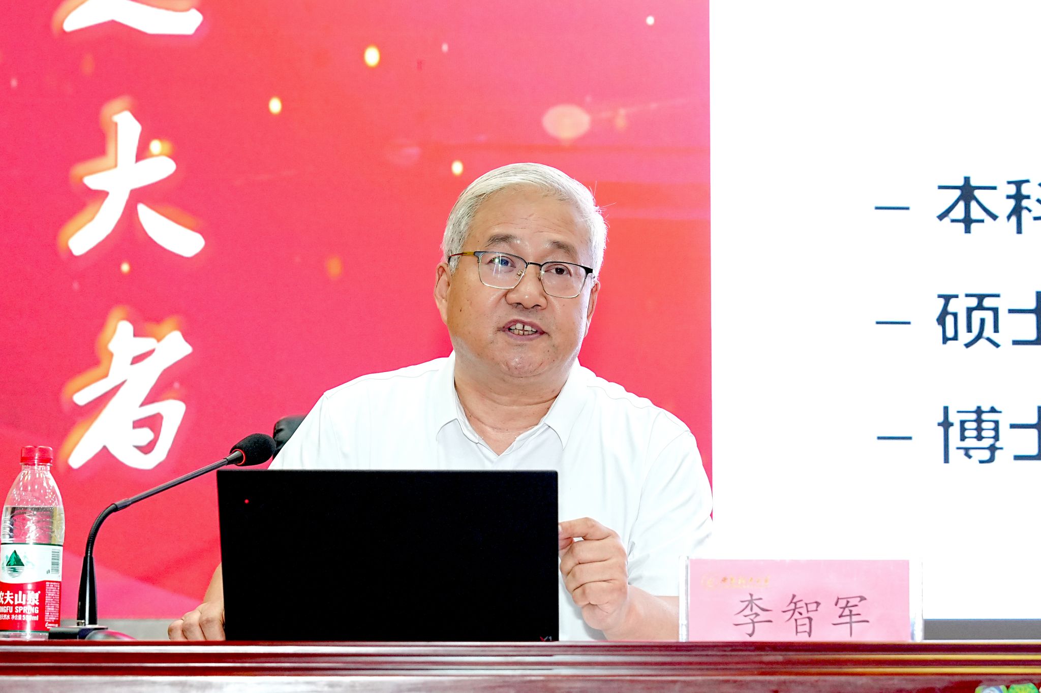 李智军向同学们提出了三点希望:一是心怀“国之大者”,厚植家国情怀;二是牢记“学术之志”,坚持守正创新;三是传承“艰苦奋斗”,志成国之栋梁。他希望,研究生新生能够跟随优秀导师、优秀校友、优秀同学的足迹,坚守“尽精微、致广大”的心志,发扬“艰苦奋斗、自强不息”的KY开元精神,将自己的学术理想内化于心、外化于行,在强国建设、民族复兴的伟大征程中挺膺担当、奋勇争先,成为KY开元“优秀故事”的创造者和续写者。