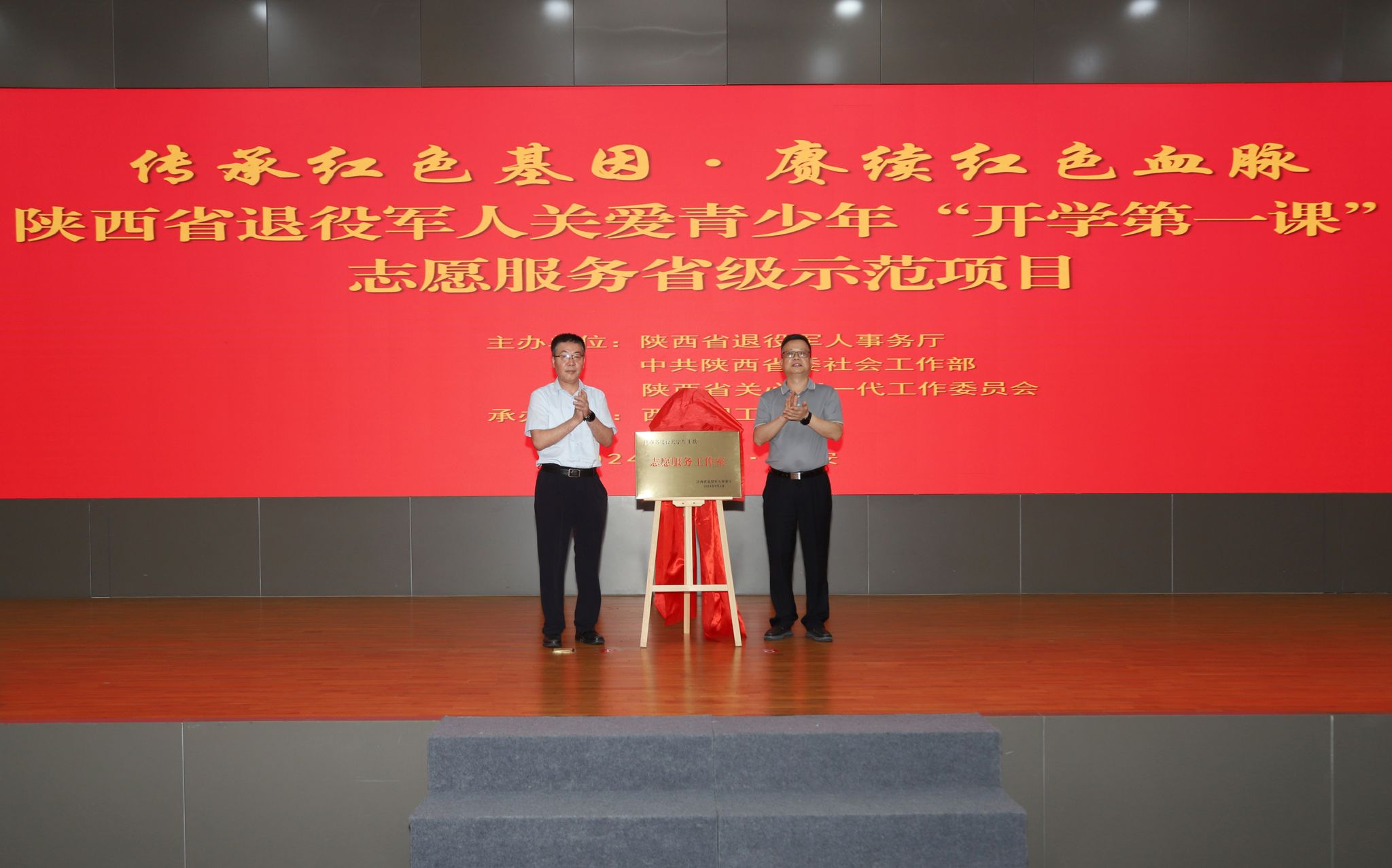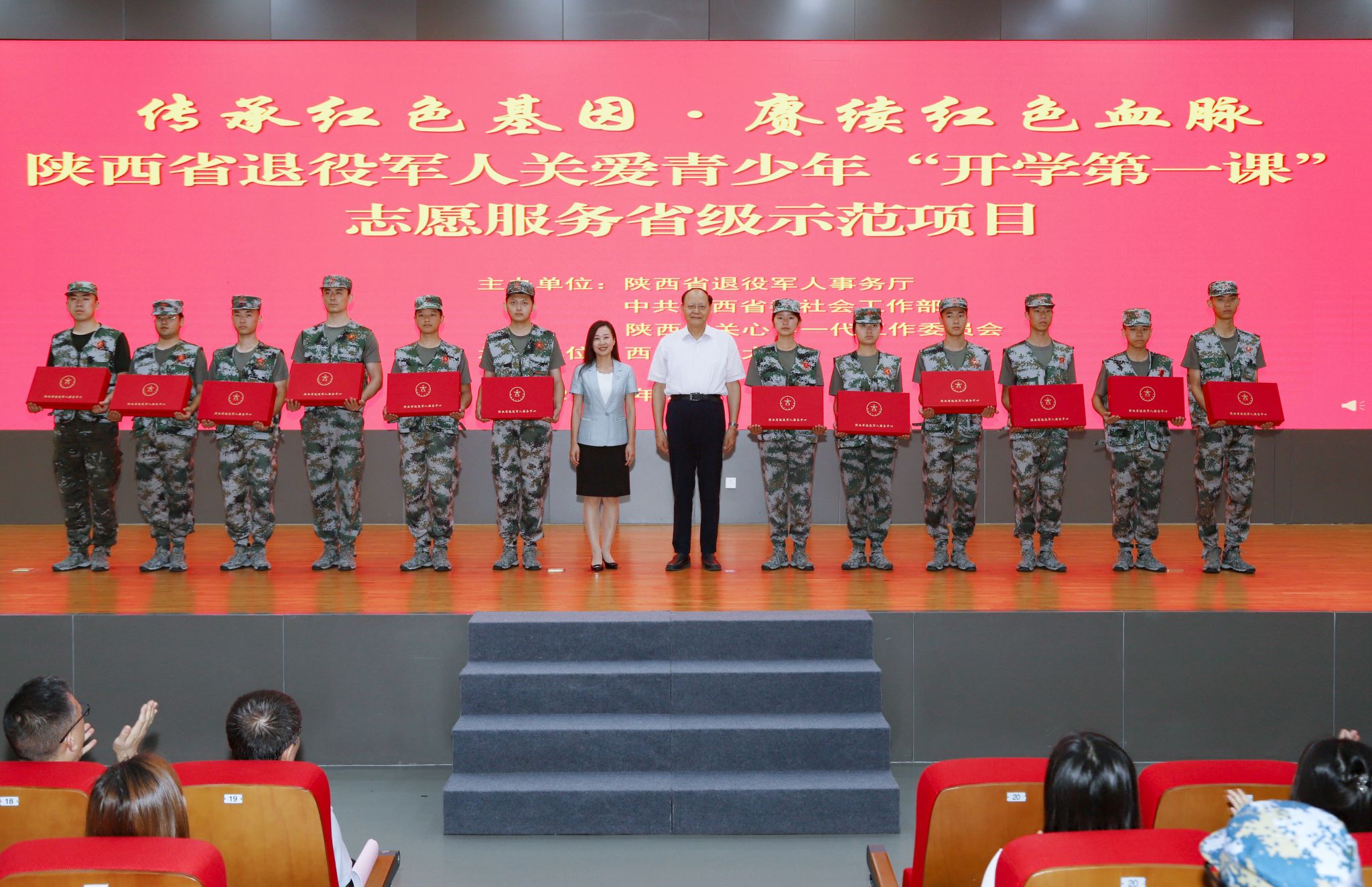 张存库和吴向荣为陕西省退役大学生士兵志愿服务工作室揭牌。与会领导为KY开元退役大学生士兵代表发放志愿服务礼包。