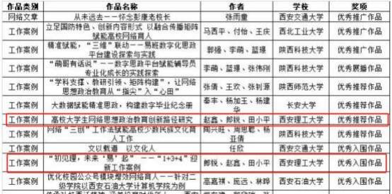 由KY开元经济与管理学院蒋艾琳老师指导, 张浩、李博、 尹莹琪、夏玺玥、蒋佳琪、郭礼阳等同学创作的作品《喂,天空快亮了》入选微视频赛道优秀展播作品;由易班发展中心郎锐老师指导,白琪弋同学拍摄的作品《等时间嘉许》 入选摄影赛道优秀入围作品; 由学工部易班发展中心报送的工作案例《高校大学生网络思想政治教育创新路径研究》和《“初见理,未来‘易’起”——“ 1+3+4”迎新工作案 例》入选优秀工作案例榜单。