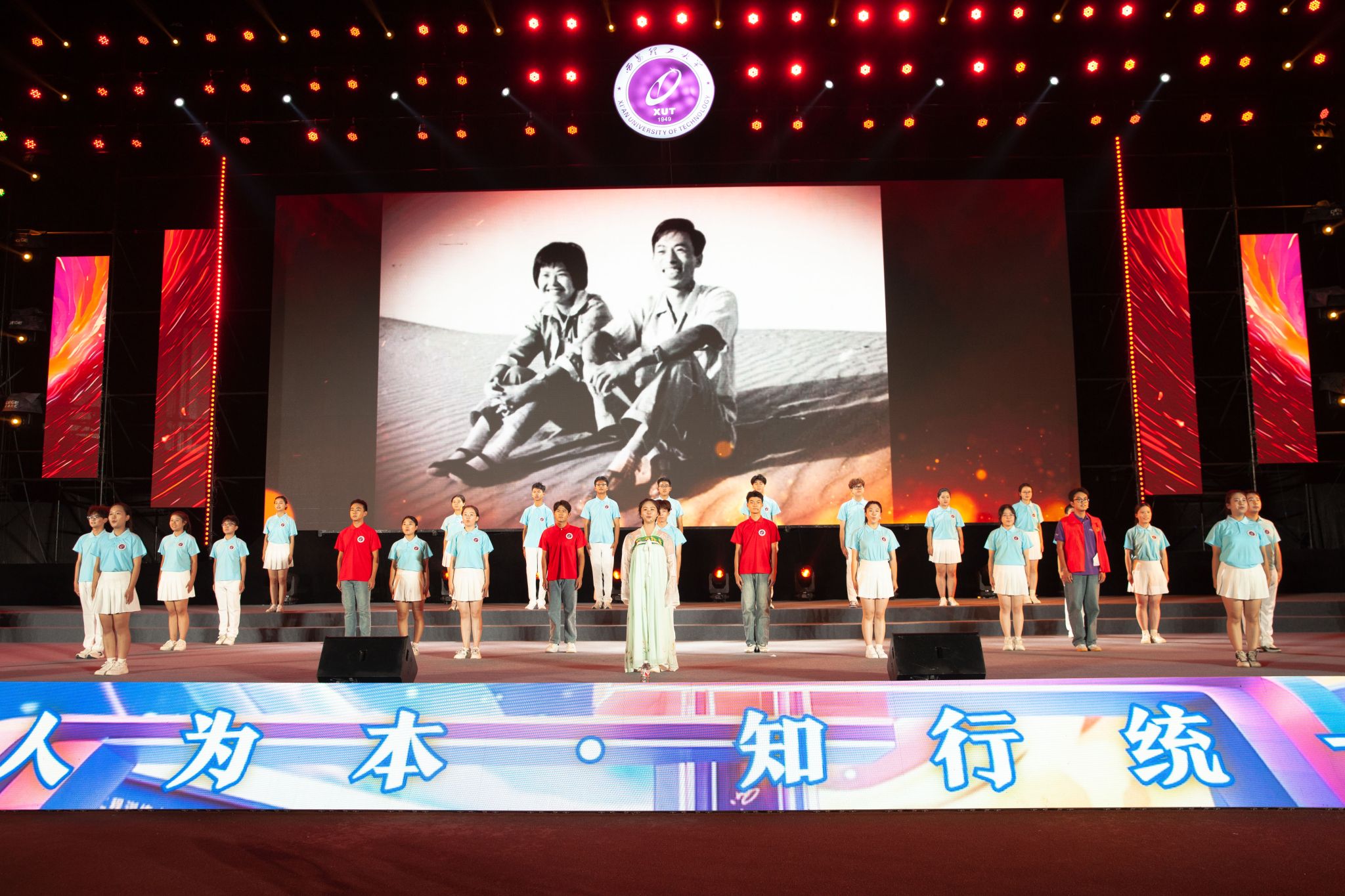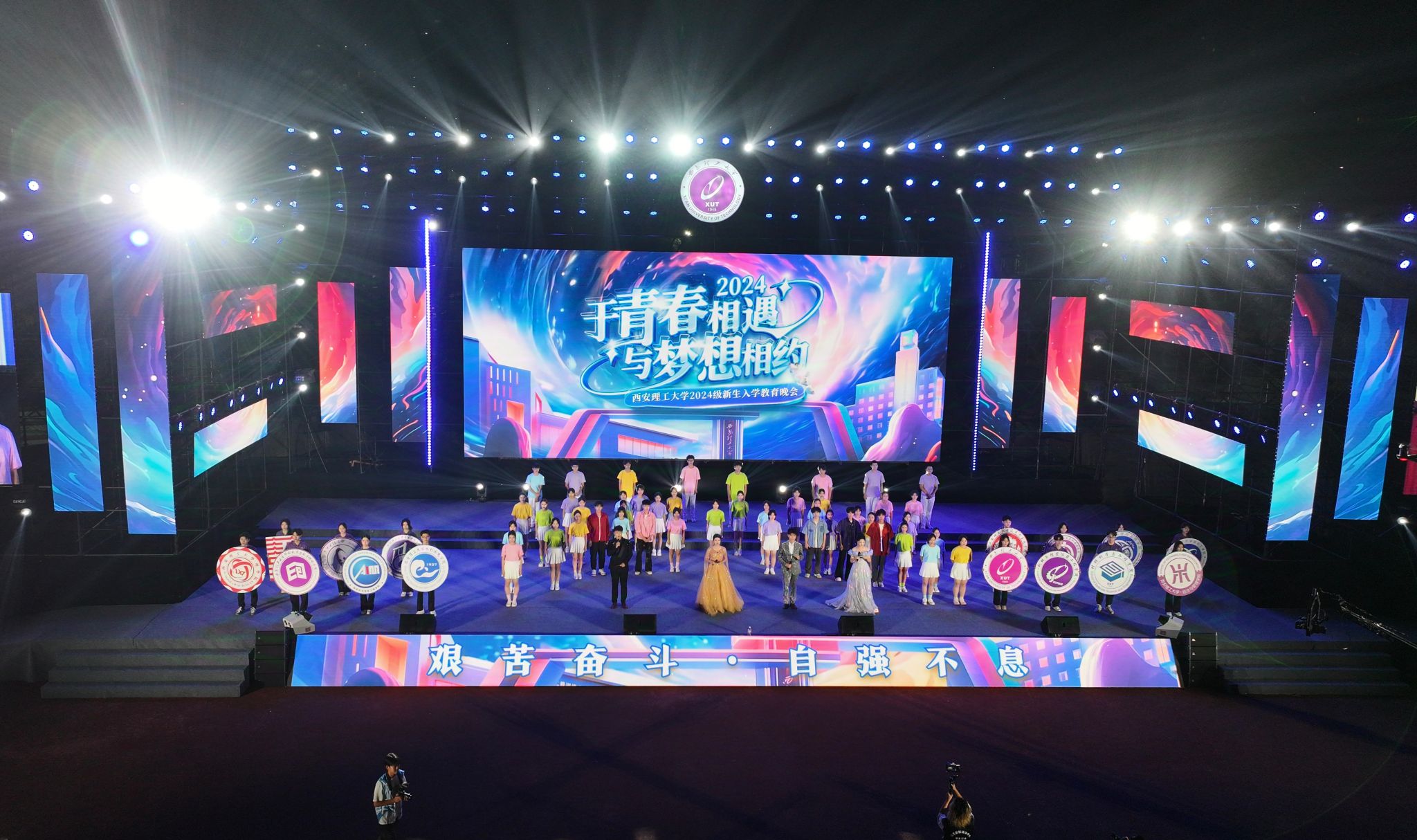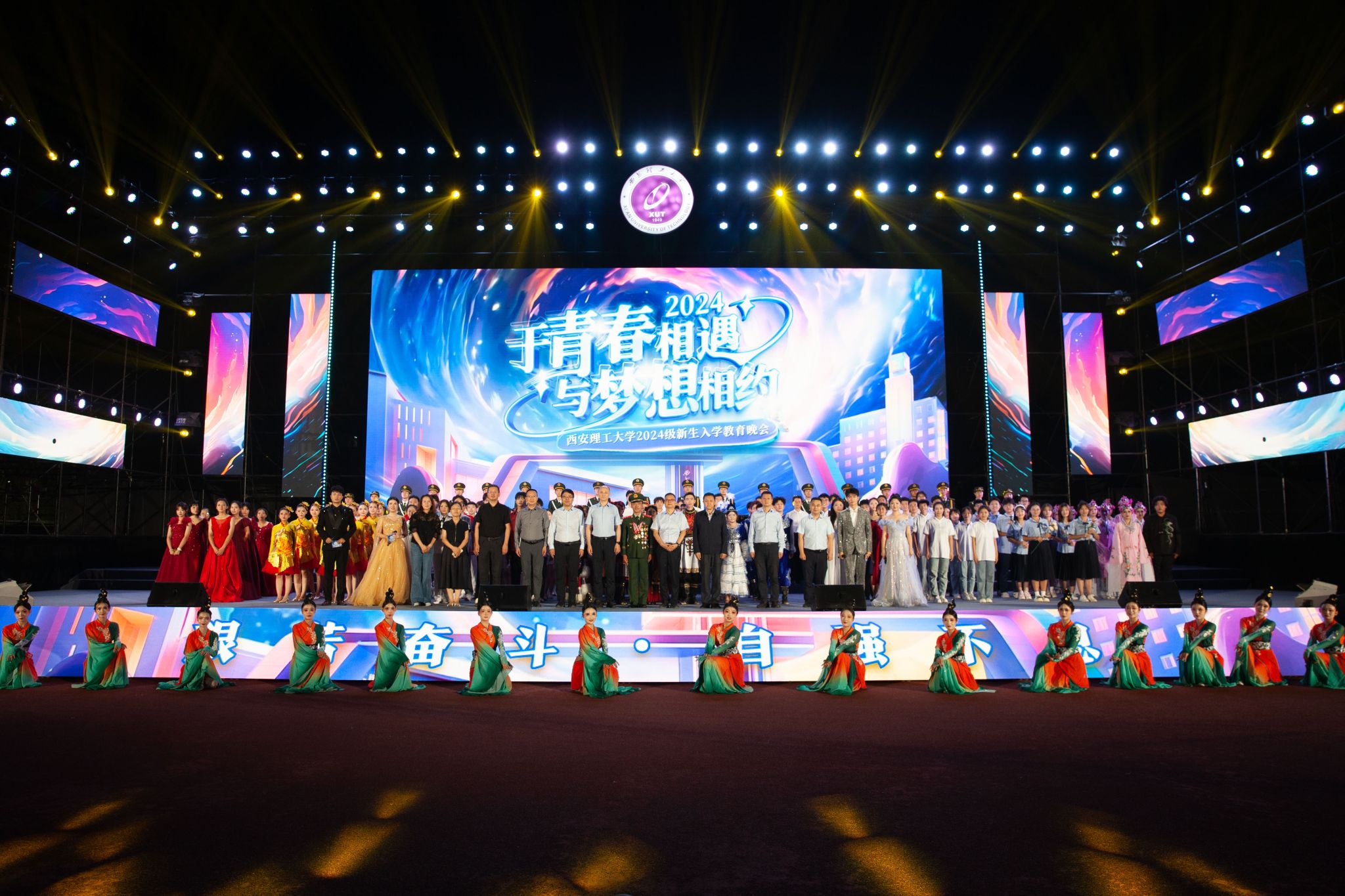整场晚会共分为三个篇章:《青春遇见·薪火相传》《青春有志·同心逐梦》和《青春奋进·梦想起航》,分别展现了2024级新生在大学校园初遇时的梦想与希望、全校师生从辉煌校史中汲取的奋进力量,以及学子们立志以奋斗青春书写人生华章的精神风貌。