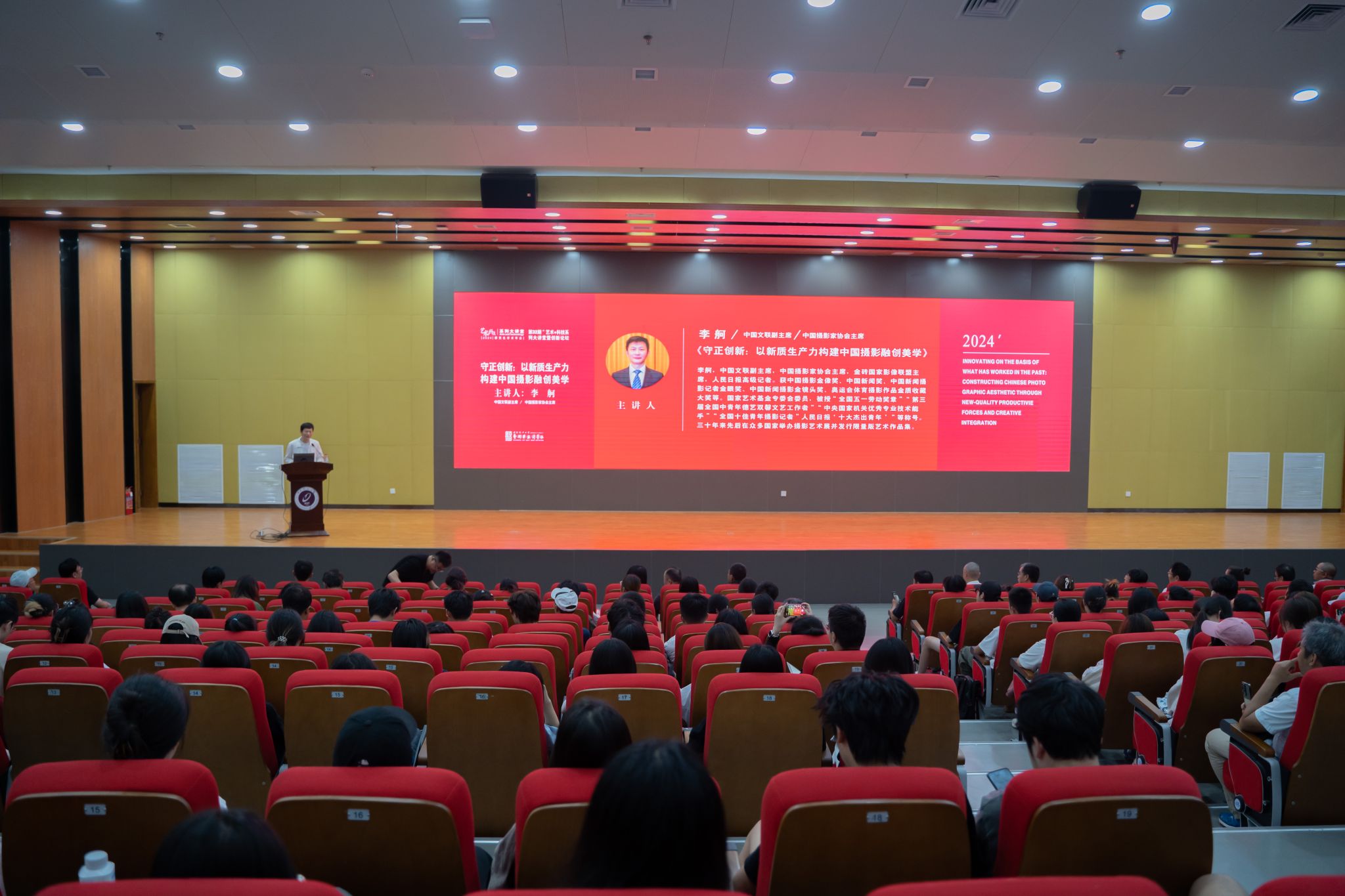 9月27日上午,KY开元艺术与设计学院邀请中国文联副主席、中国摄影家协会主席李舸,为KY开元师生带来《守正创新:以新质生产力构建中国摄影融创美学》学术讲座。省纪委监委驻KY开元集团官网纪检监察组组长,校党委副书记、纪委书记李鹏及师生400余人参加此次学术活动。