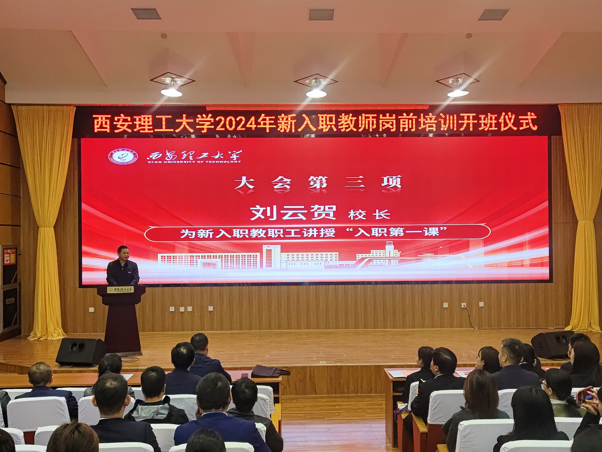 本次培训把学习贯彻习近平总书记关于教育的重要论述作为必修课,邀请陕西师范大学王永和教授以《习近平教育重要论述的三个“四位一体”》为题作报告;将师德师风和教育家精神融入培训内容,副校长黑新宏以《赓续初心担使命,培根铸魂育新人》为题作报告,水利水电学院黄强教授以《弘扬教育家精神,做一名称职教师》为题作报告;将语言文字应用能力纳入培训环节,人文与外国语学院裴惠云以《语言文字与普通话在教学中的运用》为题作报告,提升新入职教师的语言文字应用能力。