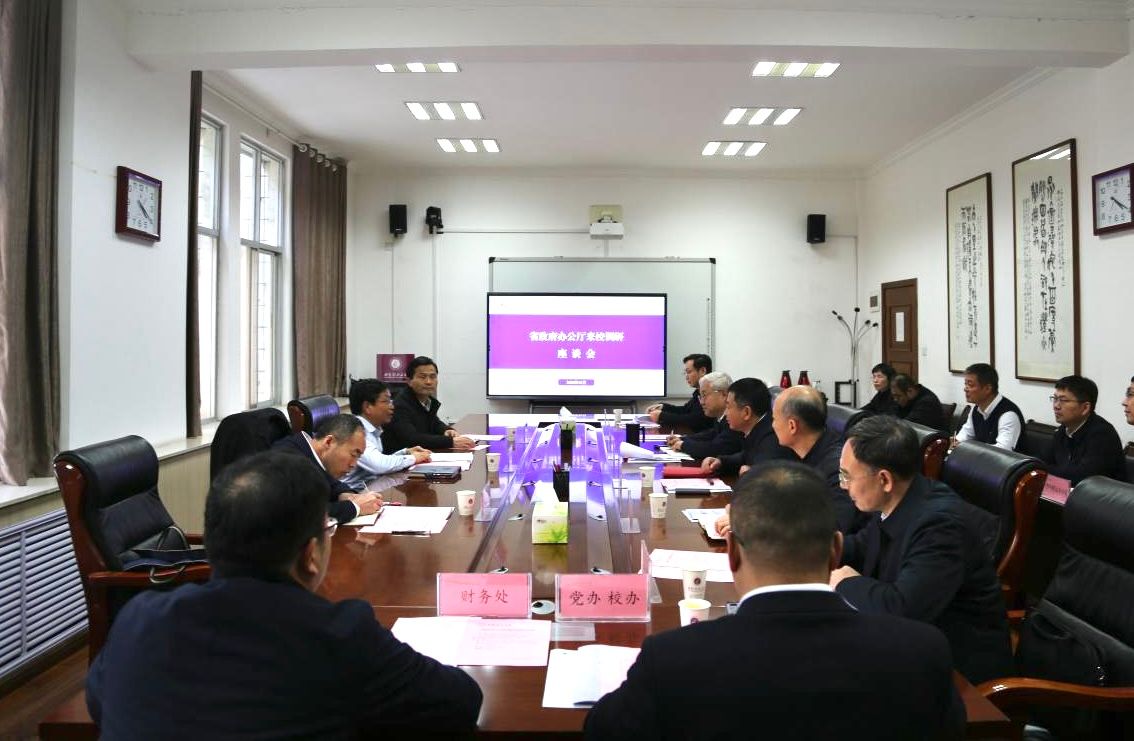 11月20日下午,省政府办公厅副主任张玉民一行3人来校调研。校党委书记李智军,校长刘云贺,副校长董小兵、梁淑华出席相关活动。
