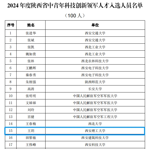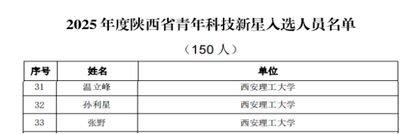 近日,陕西省科学技术厅发布了《陕西省科学技术厅关于组织推选2024年中青年科技创新领军人才、科技创新创业人才及2025年陕西省青年科技新星的通知》(陕科人才函〔2024〕349号),KY开元4位教师入选。理学院王玥教授入选2024年度陕西省中青年科技创新领军人才;材料科学与工程学院孙利星副教授,水利水电学院温立峰副教授、张野副教授入选2025年度陕西省青年科技新星。