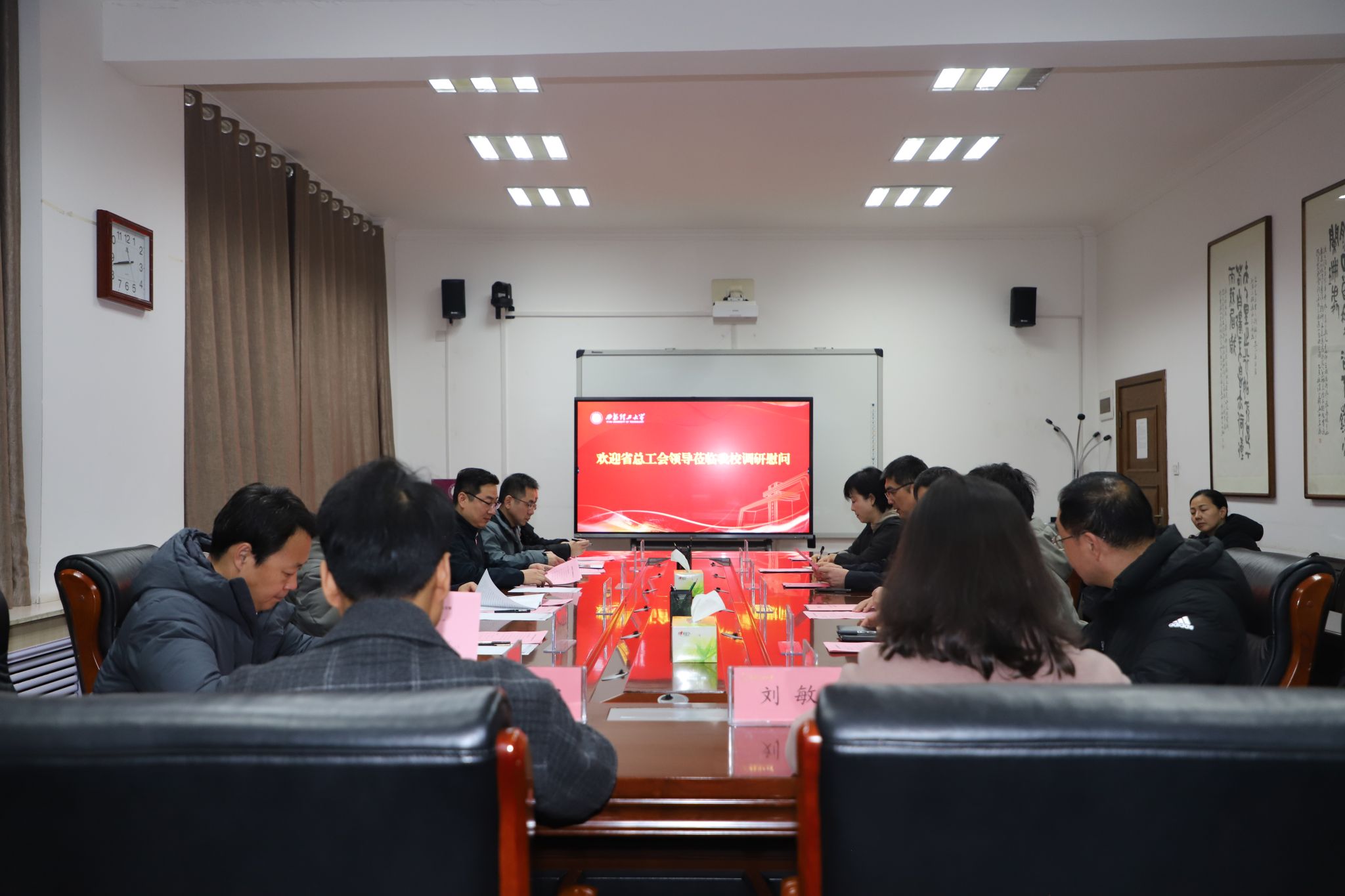 李智军对王永岗一行表示欢迎,并简要介绍了学校近年来在人才培养、科学研究、“三项改革”等方面取得的进展和成效,感谢陕西省总工会和陕西省教科文卫体工会长期以来对学校工会工作的支持和帮助。他表示,学校党委高度重视工会工作,在工作经费、工作条件等方面给予了大力支持。他要求学校工会紧密围绕学校建设发展大局,在尊重和服务教职工、主动排忧解难、维护好教职工权益方面下功夫,充分发挥工会组织在凝聚人心、鼓舞干劲、推动发展方面的作用。