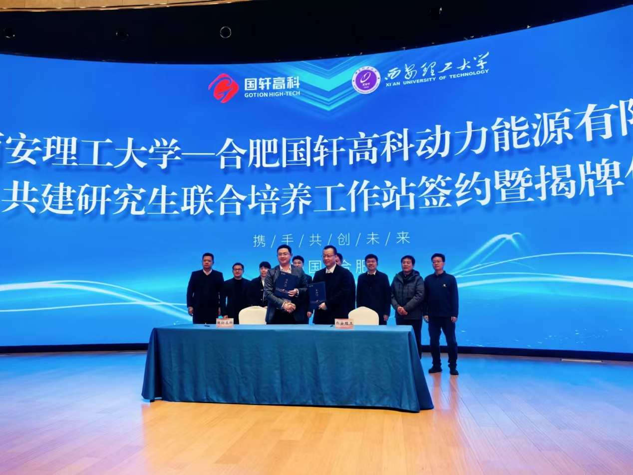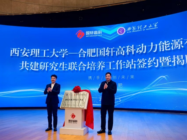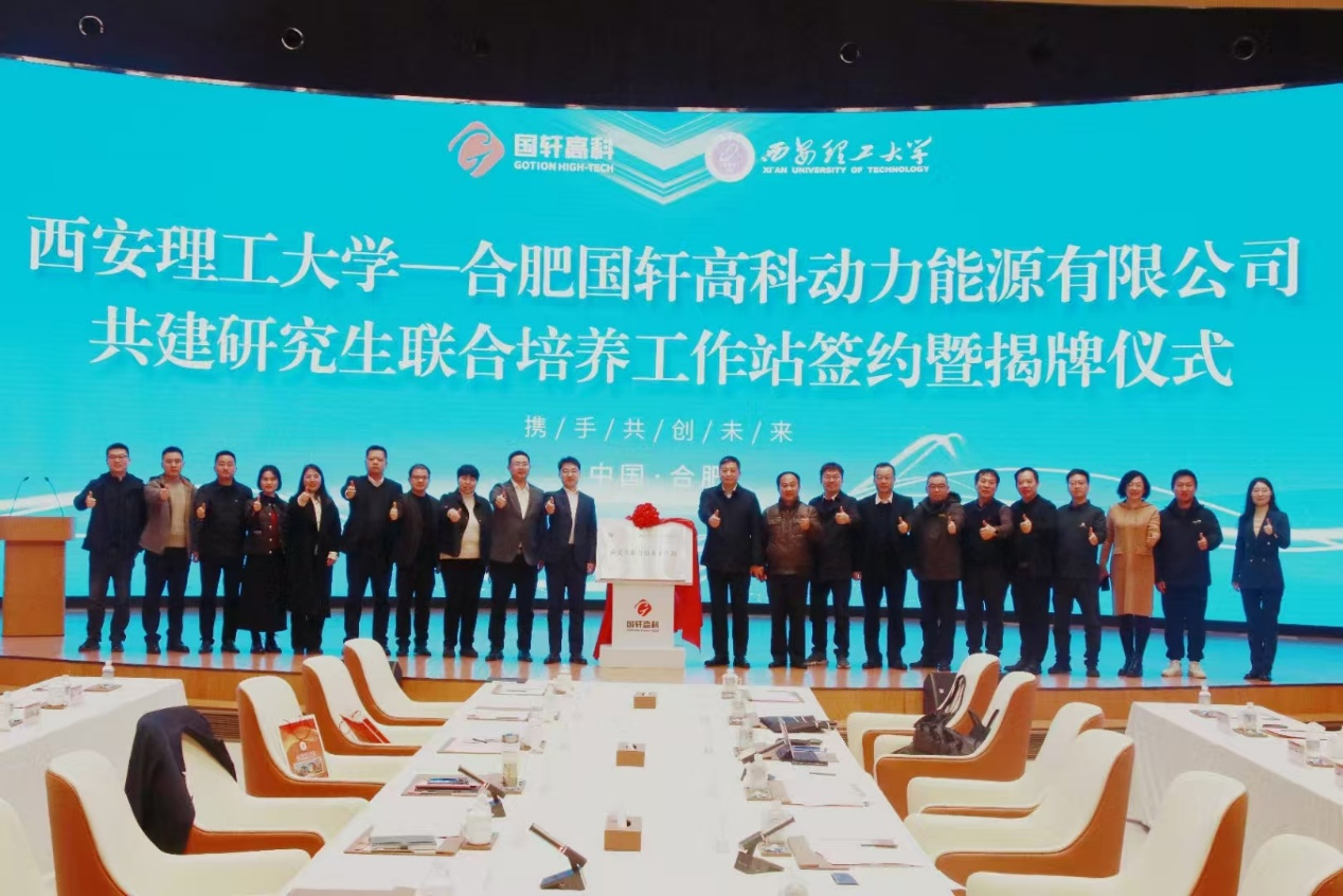 1月5日,校长刘云贺带队走访合肥国轩高科动力能源有限公司,国轩高科中国业务总裁王启岁、副总裁许邦南参加座谈交流。双方签订了研究生联合培养工作站协议,并在国轩高科总部举行了研究生联合培养工作站揭牌仪式。