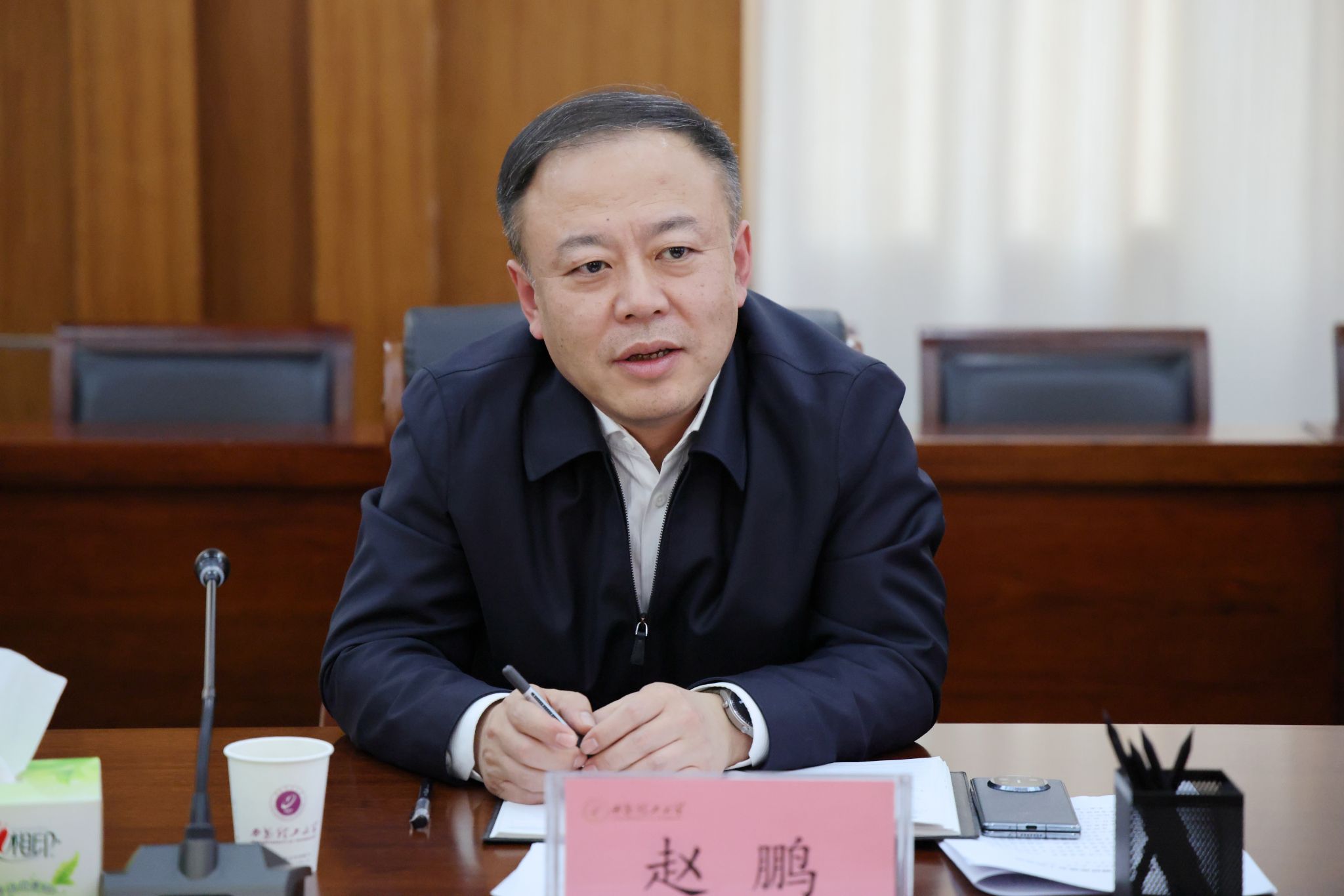 赵鹏对学校在“双一流”建设和科技成果产业化等方面取得的成绩给予肯定。他指出,财政厅将一如既往支持学校事业发展,希望学校能够瞄准国家重大战略集群和陕西省重点产业链建设布局,挖掘优势学科资源,建立校企合作互补机制,发挥政府引导基金在高校科技成果转化中的作用,并表示将以此次调研为契机,持续关注学校“双一流”建设,进一步加强与学校在重点领域的沟通协调和校企产业化布局试点,推动学校为地方经济发展注入新的活力。