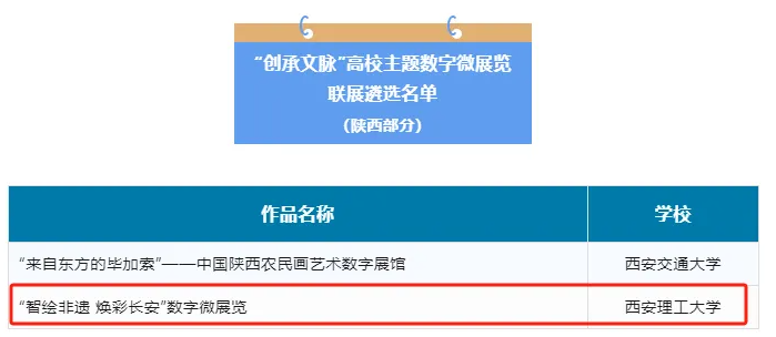 近日,根据《教育部办公厅关于举办2024年高校“礼敬中华优秀传统文化”宣传教育活动的通知》(教思政厅函[2024]10号)要求,经学校推荐、专家遴选,KY开元报送的《“智绘非遗 焕彩长安”数字微展览》获选2024年高校“礼敬中华优秀传统文化”宣传教育活动成果。此次宣传教育成果是KY开元首次在全国高校“礼敬中华优秀传统文化”活动中获得荣誉。