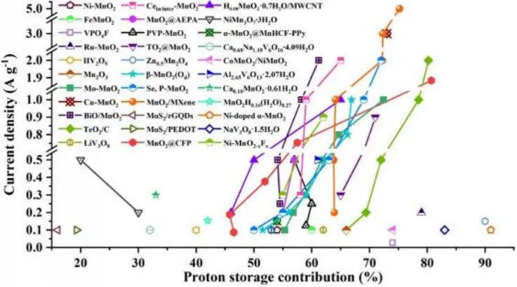 图3已报道的具有H+/Zn2+共嵌入反应机理的无机正极材料中的质子存储贡献