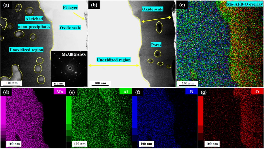 在航空航天及核电工业领域,高温氧化引发的相变失效已成为其热端部件服役可靠性和安全性的决定性约束因素,开发兼具优异抗氧化性能和结构稳定性的先进热防护系统具有重要意义。以 MoAlB 为典型代表的三元过渡金属硼化物(MAB相),通过金属-共价/离子键协同作用构建的独特晶体结构,融合了金属材料的导电/热特性与陶瓷材料的本征结构稳定性,在极端服役环境下展现出显著应用潜力。然而,该材料体系在1200℃高温环境下呈现的线性氧化动力学行为导致抗氧化性能急剧衰减,严重制约了其工程化应用。