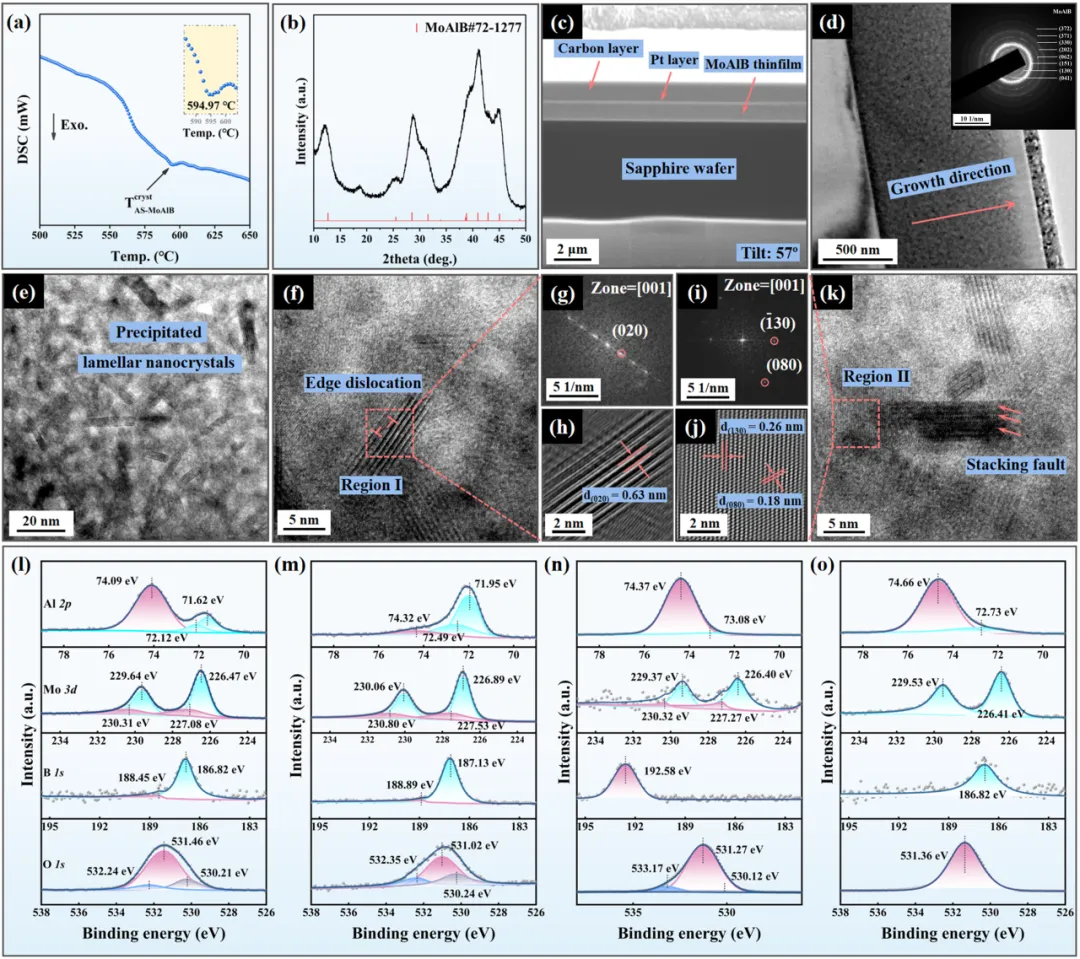 图1. 非晶/纳米晶双相结构MoAlB微观结构表征.