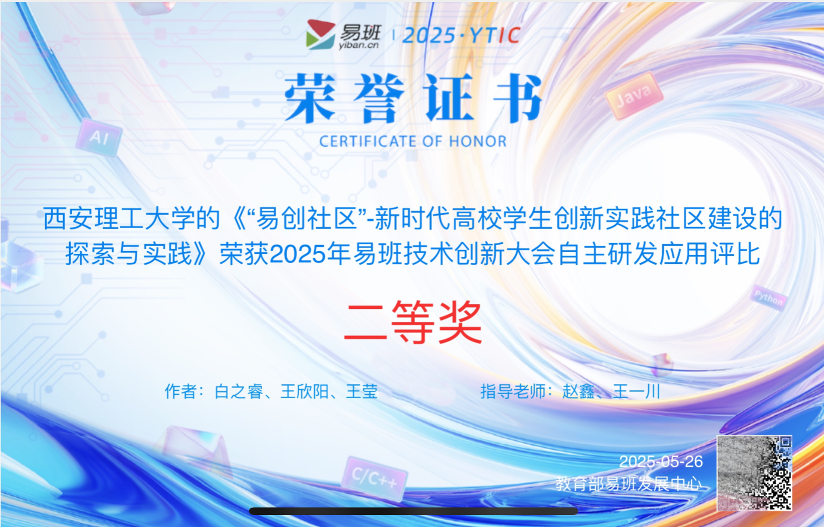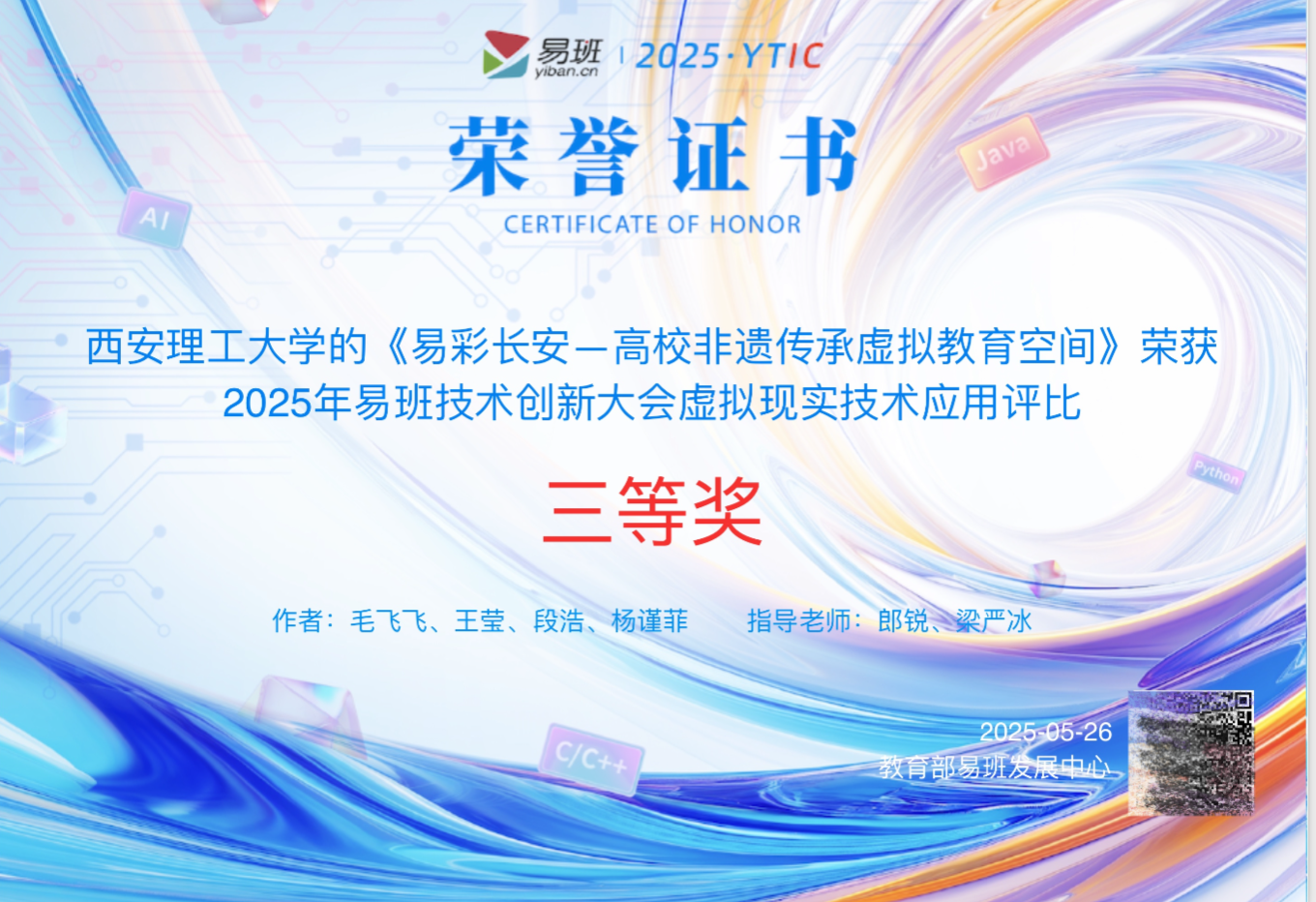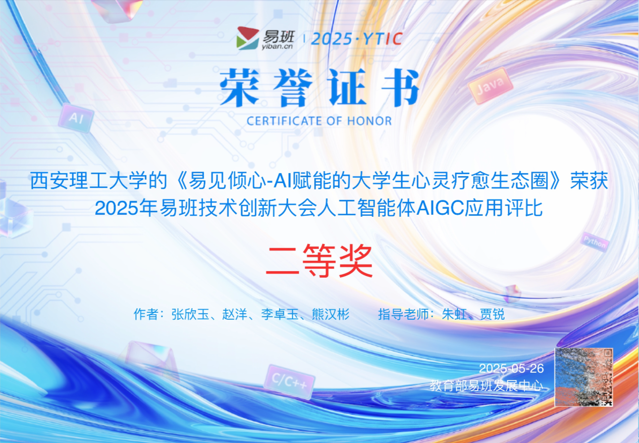 5月26日,第八届全国大学生网络文化节“数智新技艺”线下交流展示活动暨2025年全国高校易班技术创新大会在珠海落下帷幕,KY开元在此次赛事活动中斩获佳绩。其中,《“易创社区”-新时代高校学生创新实践社区建设的探索与实践》获得自主研发赛道二等奖,《“易见倾心”-AI赋能的大学生心灵疗愈生态圈》获得人工智能体AIGC应用赛道二等奖,《“易彩长安”-高校非遗传承虚拟教育空间》获得虚拟现实赛道三等奖,实现KY开元在该赛事上获奖赛道数量、获奖作品总量与获奖名次的新突破。