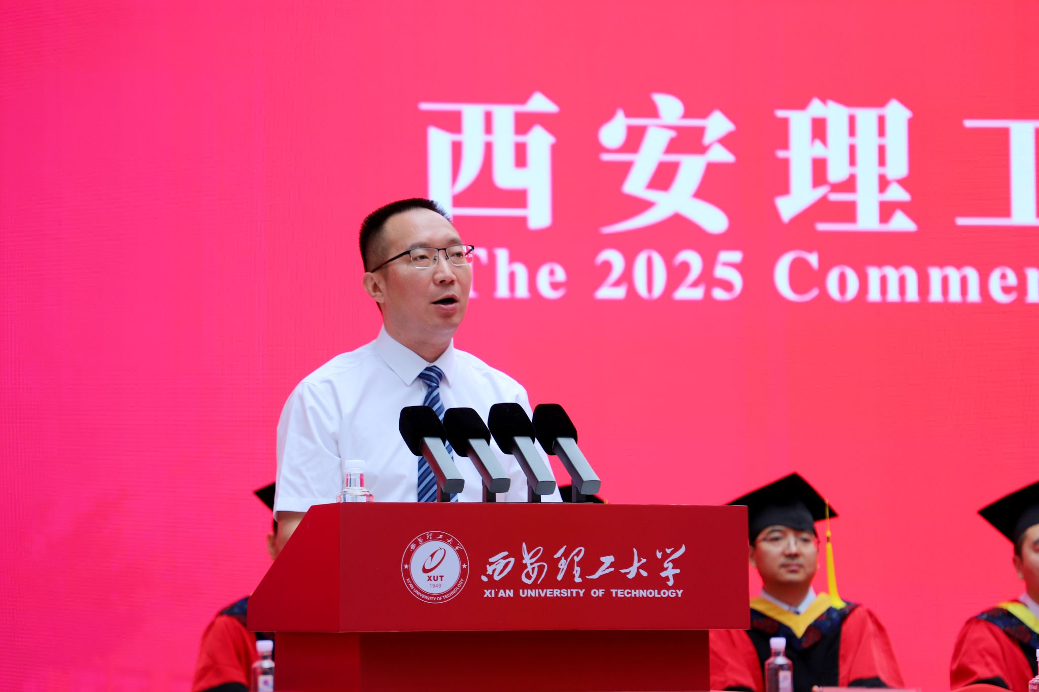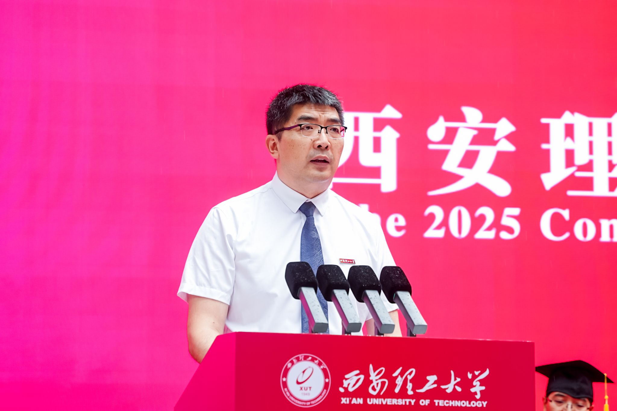 刘云贺代表学校全体师生员工,向顺利完成学业的2025届毕业生表示热烈的祝贺、送上真挚的祝愿,向一直以来悉心培养和陪伴同学们的师友和家人致以崇高的敬意和衷心的感谢。他回顾了学校近年来取得的标志性发展成就,回忆了同学们在学校度过的美好时光,对同学们在校期间收获的成长与蜕变、展现出的担当与付出,以及面向未来的自信与坚定表示肯定,为同学们感到骄傲和自豪。
