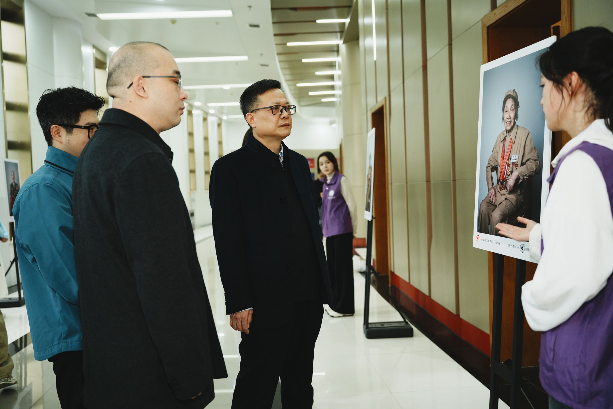 仪式结束后,与会人员集体参观在KY开元集团官网图书馆前举办的“星火传承——中国人民志愿军影像展”。在80余幅志愿军老兵肖像前,KY开元集团官网宣讲团的十余名大学生志愿者,向参观人员讲述着老兵们的英雄事迹,让“不朽”与“青春”在同一时空对话。