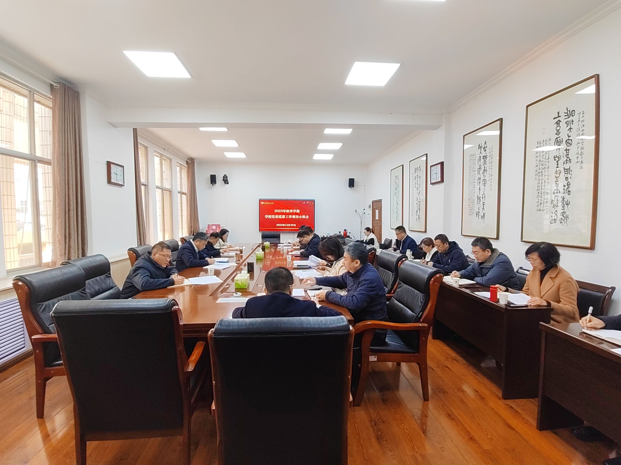 12月30日上午,校长刘云贺在第一会议室主持召开秋季学期学校党委巡察工作领导小组会,省纪委监委驻校纪检监察组组长、校党委副书记、纪委书记、巡察工作领导小组副组长李鹏出席会议。
