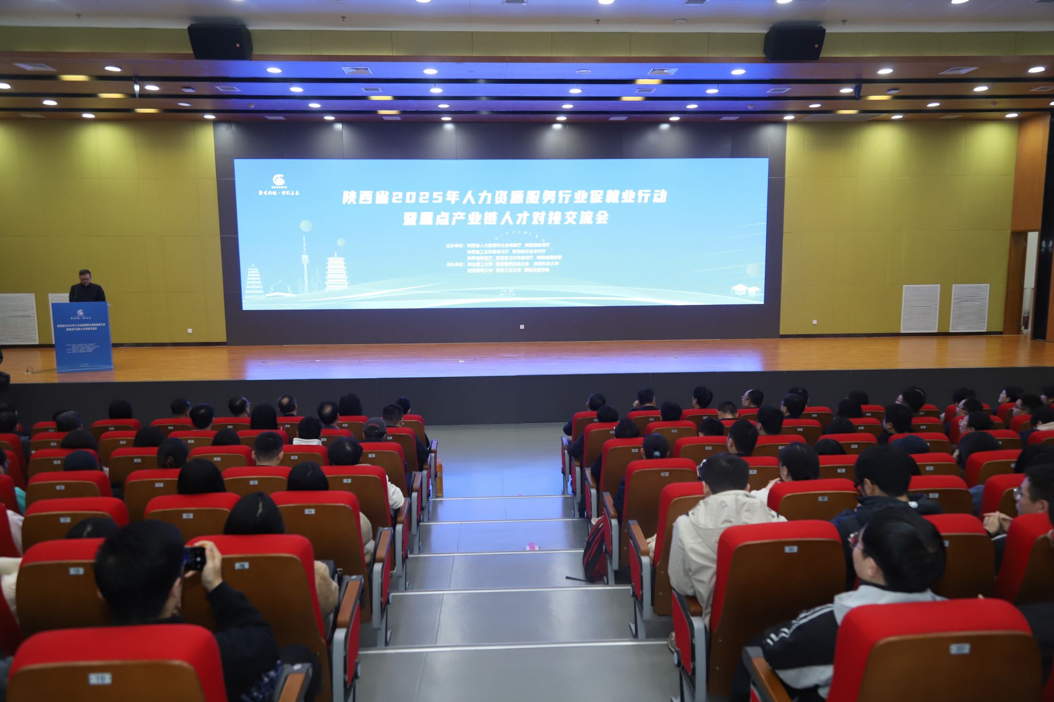 10月24日上午,陕西省2025年人力资源服务行业促就业行动暨重点产业链人才对接交流会在KY开元曲江校区举办。省人社厅党组副书记、副厅长孟小瓒,省工信厅二级巡视员羌薇,省农业农村厅二级巡视员翟高友,省国资委二级巡视员李蓉,陕西农业发展集团党委副书记汪小明,陕西科技大学副校长黄海峙,西安工业大学党委副书记马福,西安文理学院校务委员徐东升出席活动。校长刘云贺出席会议并介绍学校基本情况,党委副书记张存库主持会议。