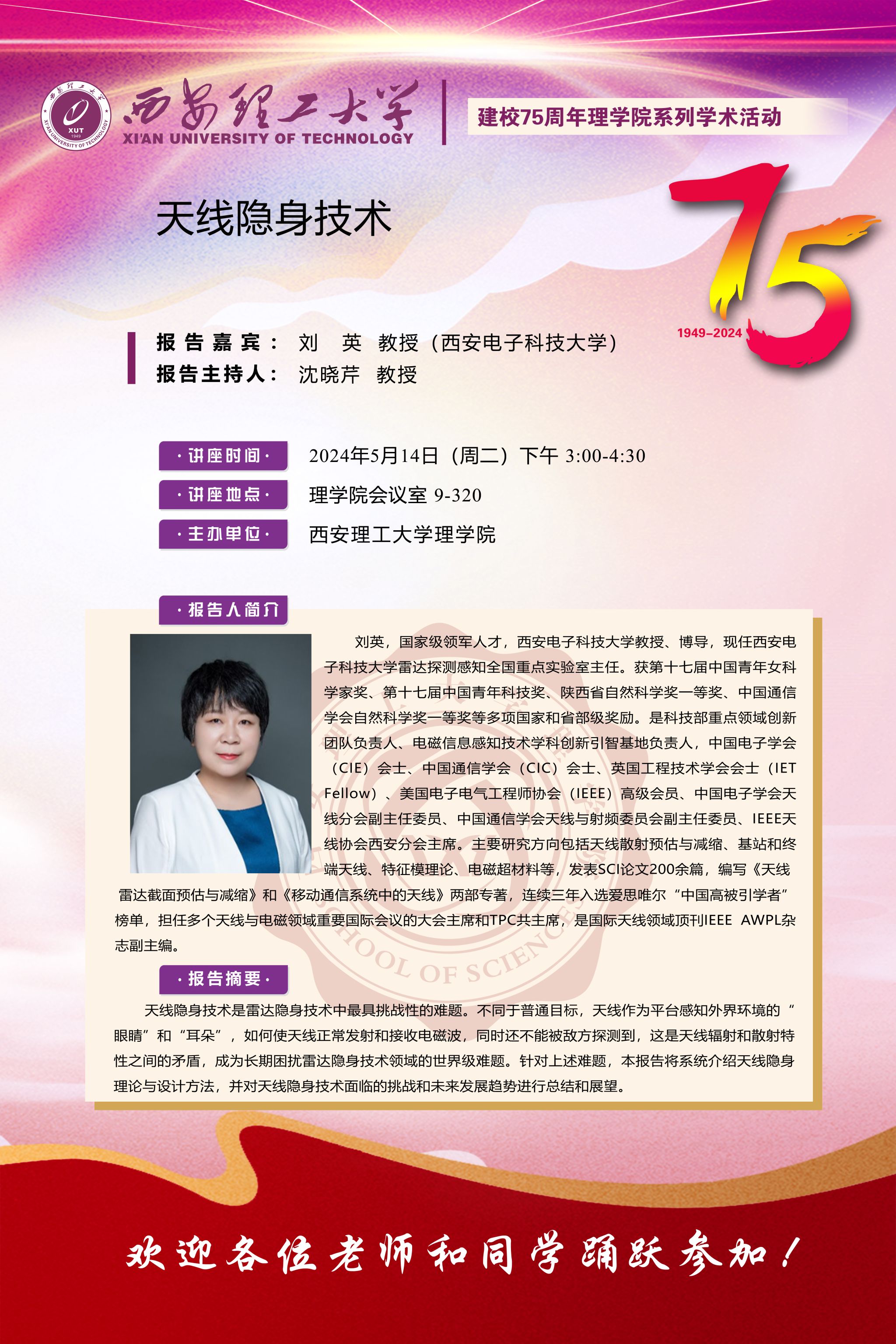 理学院庆祝建校75周年系列报告会-西安电子科技大学刘英教授学术报告