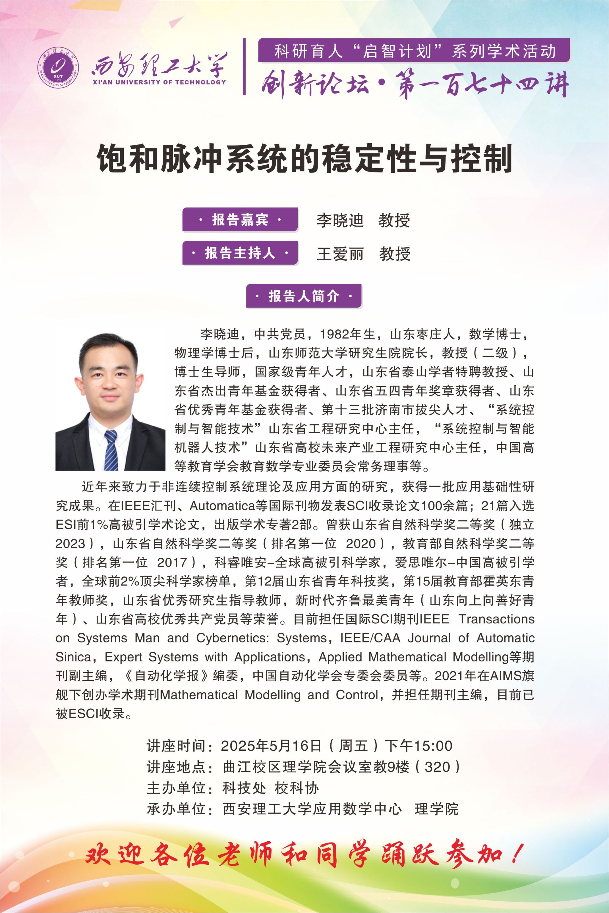 创新论坛第174讲:山东师范大学李晓迪教授学术报告