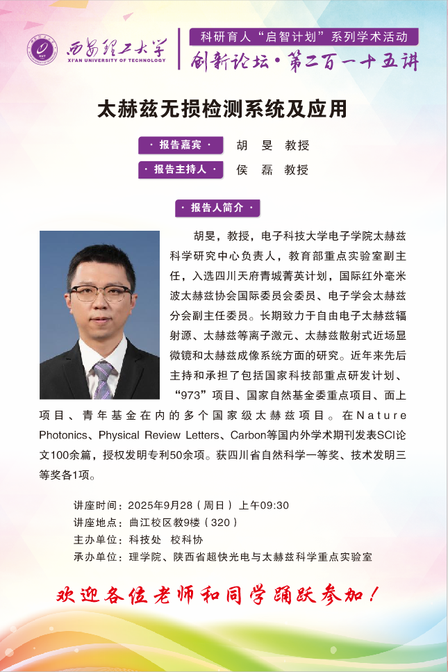 创新论坛第215讲:【明理笃学】电子科技大学胡旻教授学术报告通知