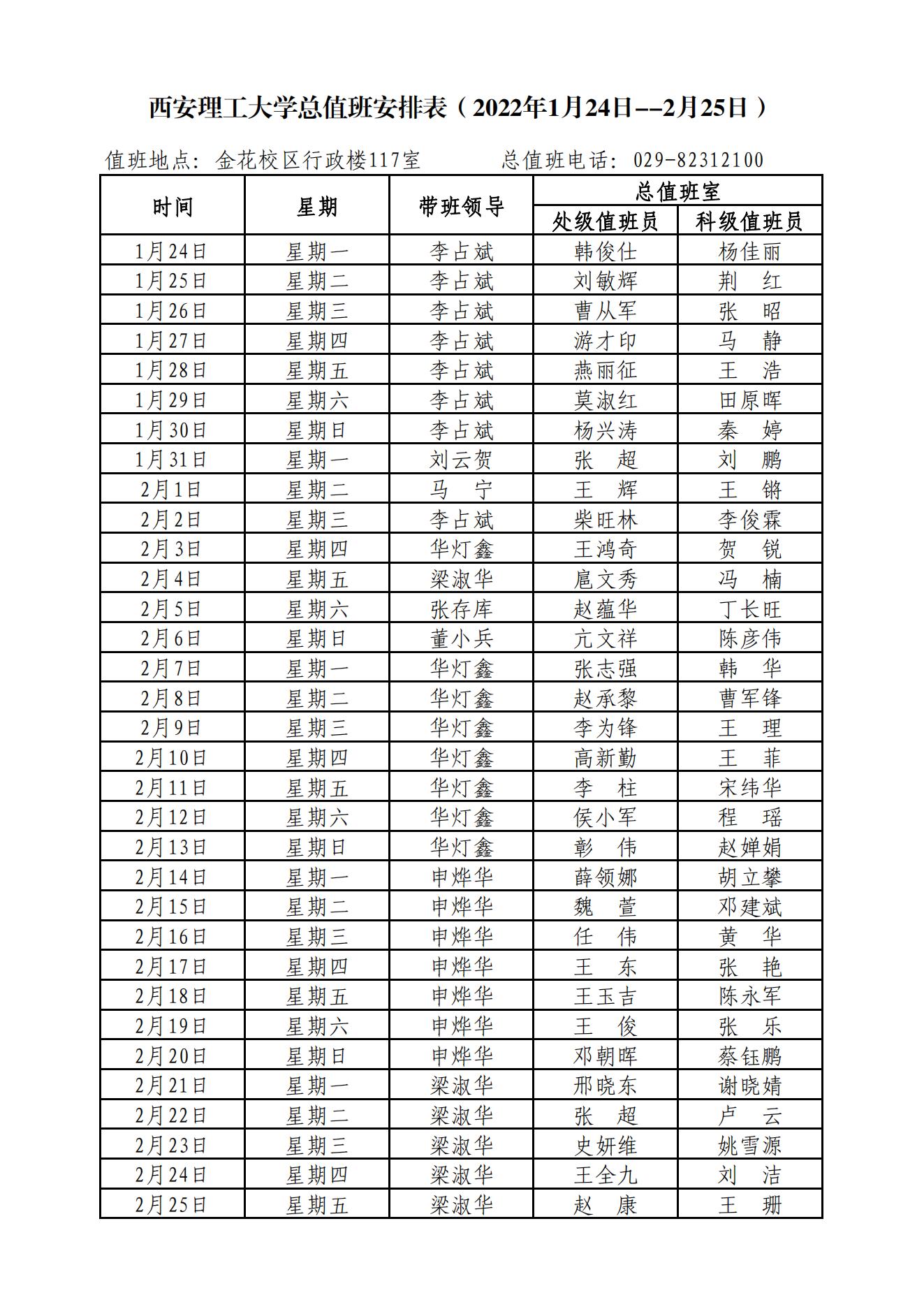 KY开元集团官网总值班安排表(2022年1月24日——2月25日)