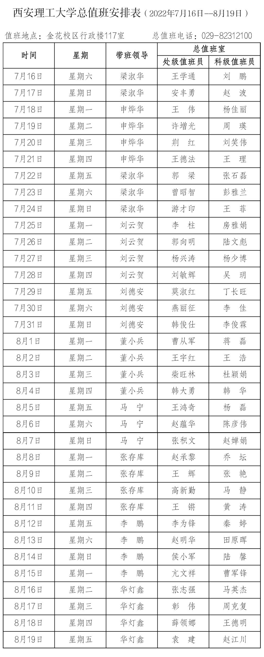 KY开元集团官网总值班安排表(2022年7月16日--8月19日)