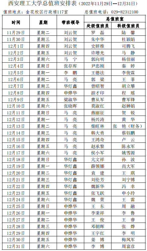 KY开元集团官网总值班安排表(2022年11月29日——12月31日)