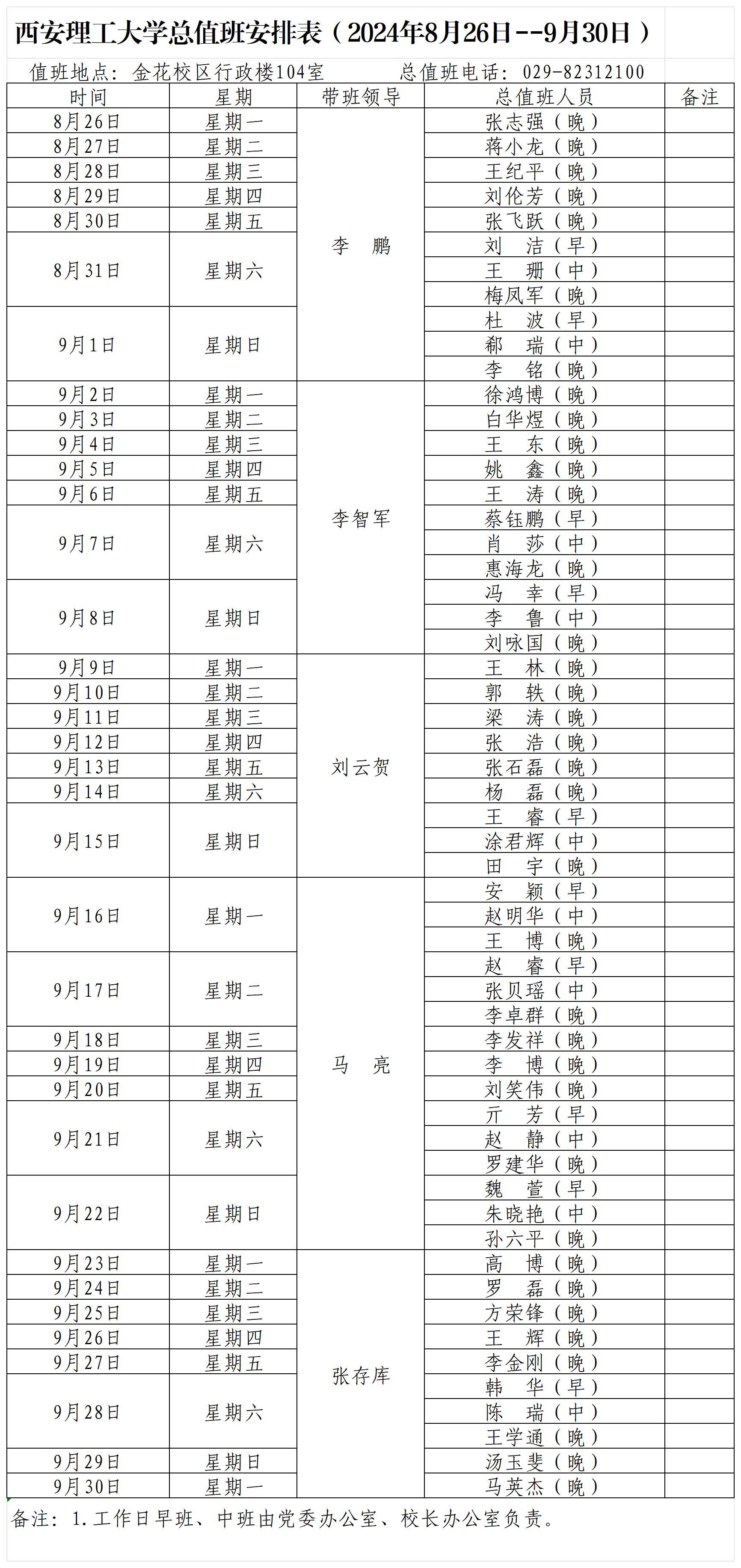 KY开元集团官网总值班安排表(2024年8月26日--9月30日)