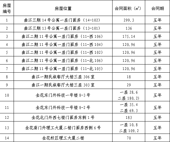 2. 招租房屋情况:本次招租共14套房屋,详见下表。