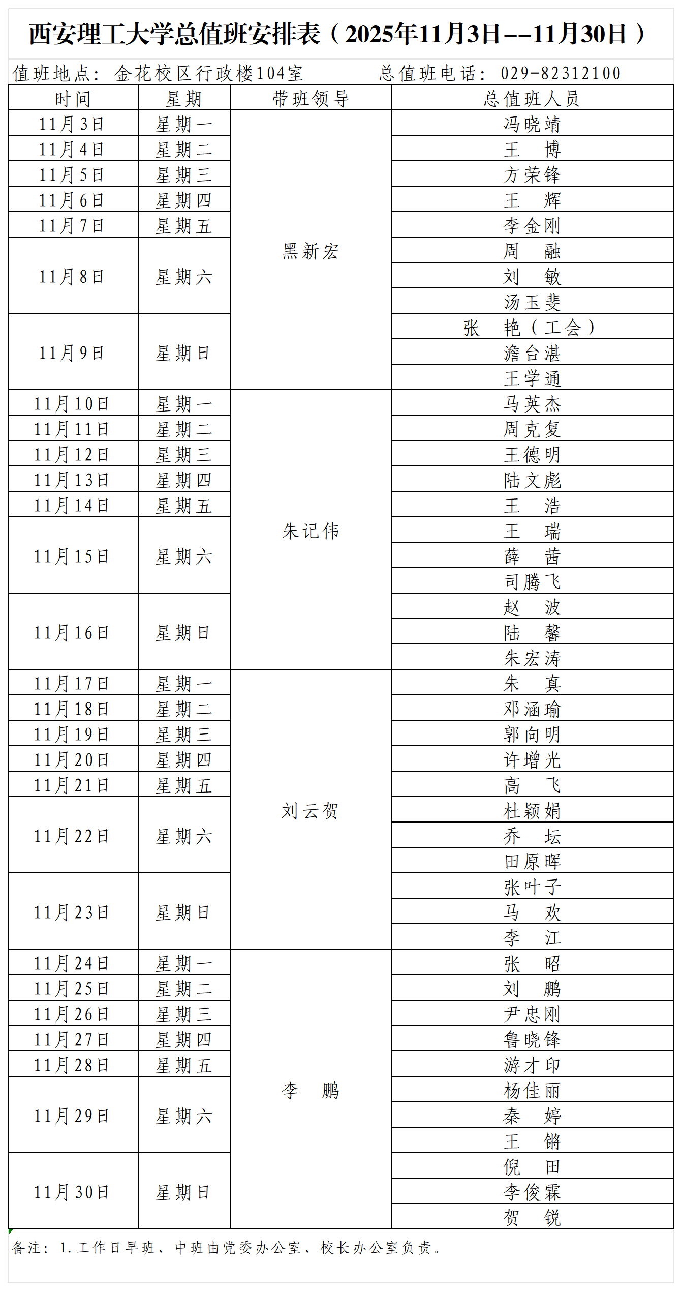 KY开元集团官网总值班安排表(2025年11月3日--11月30日)