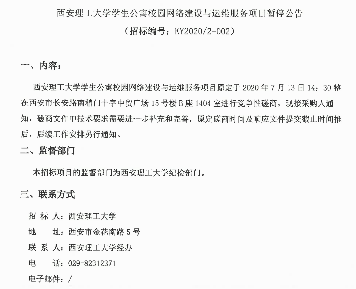 【项目暂停】KY开元集团官网学生公寓校园网络建设与运维服务项目暂停公告