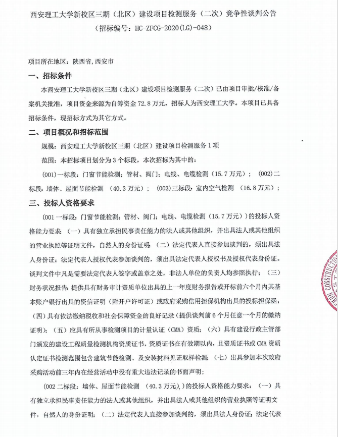 【检测服务二次】KY开元集团官网新校区三期(北区)建设项目检测服务(二次)竞争性谈判公告