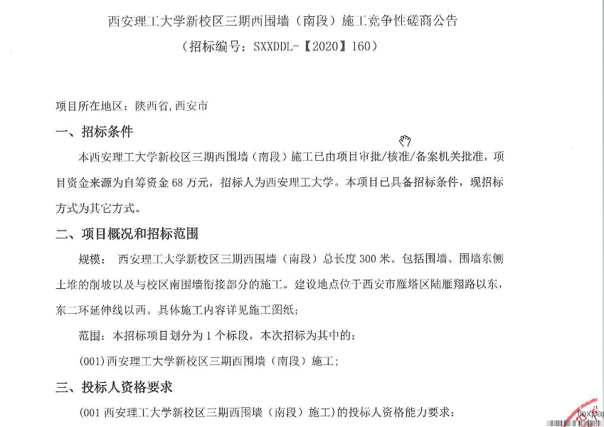 【围墙施工】KY开元集团官网新校区三期西围墙(南段)施工竞争性磋商公告
