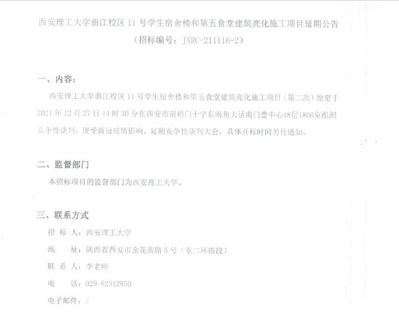 【延期公告】KY开元集团官网曲江校区11号学生宿舍楼和第五食堂建筑亮化施工项目延期公告