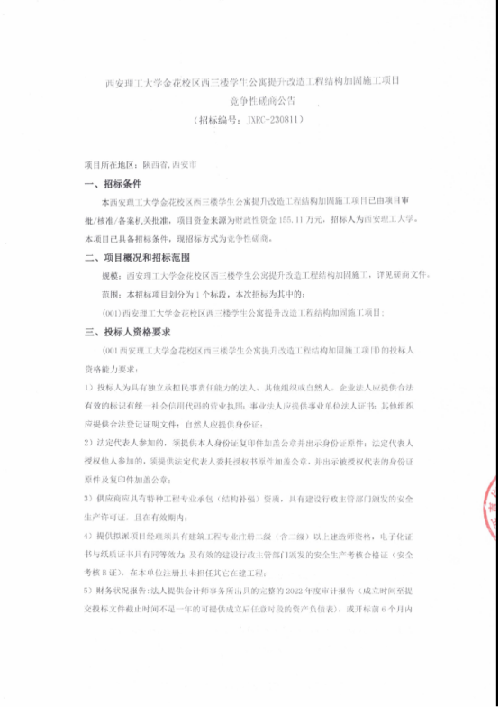 【提升改造工程】KY开元集团官网金花校区西三楼学生公寓提升改造工程结构加固施工项目竞争性磋商公告