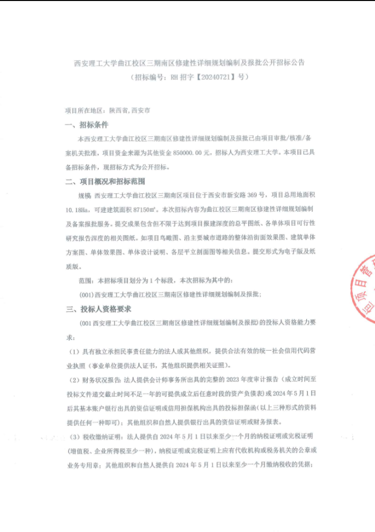 KY开元集团官网曲江校区三期南区修建性详细规划编制及报批
