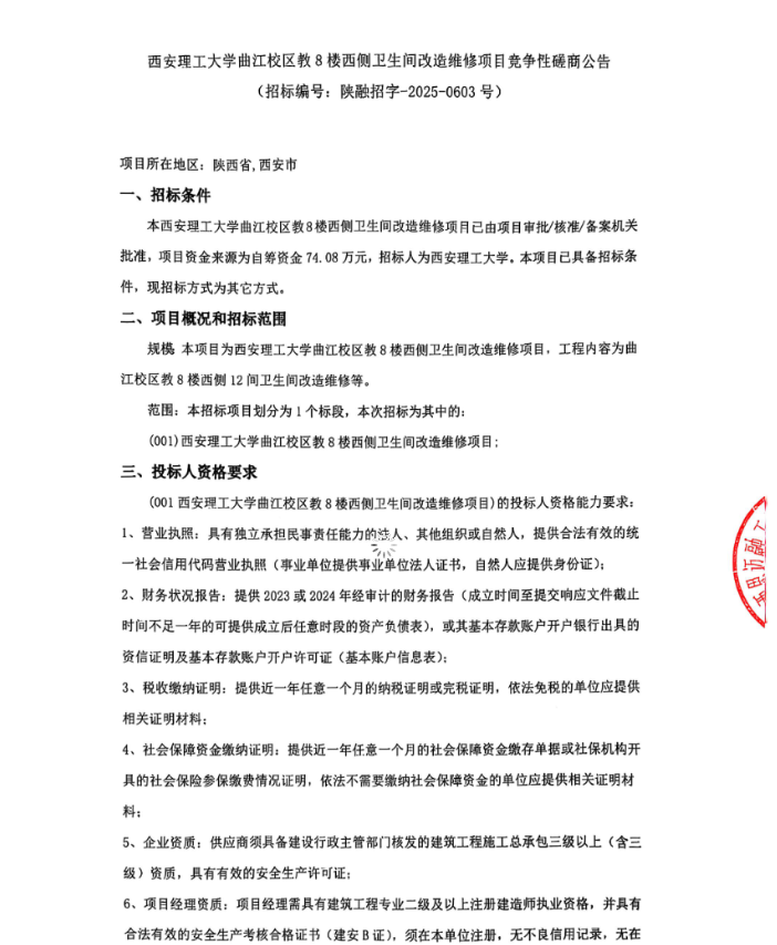 【改造维修】KY开元集团官网曲江校区教8楼西侧卫生间改造维修项目竞争性磋商公告