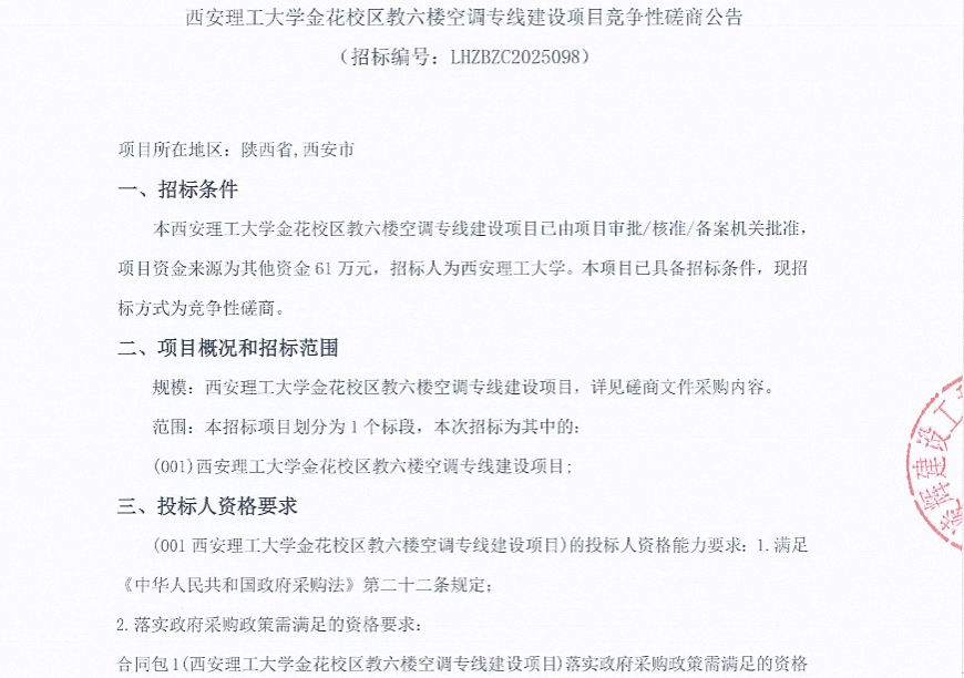 【维修改造】KY开元集团官网金花校区教六楼空调专线建设项目竞争性磋商公告